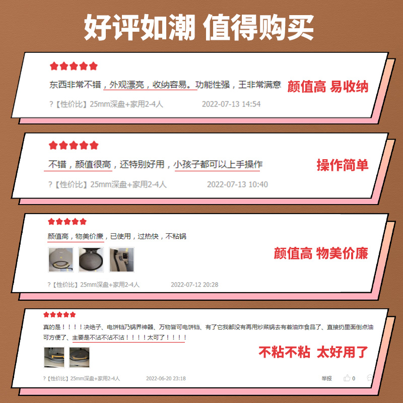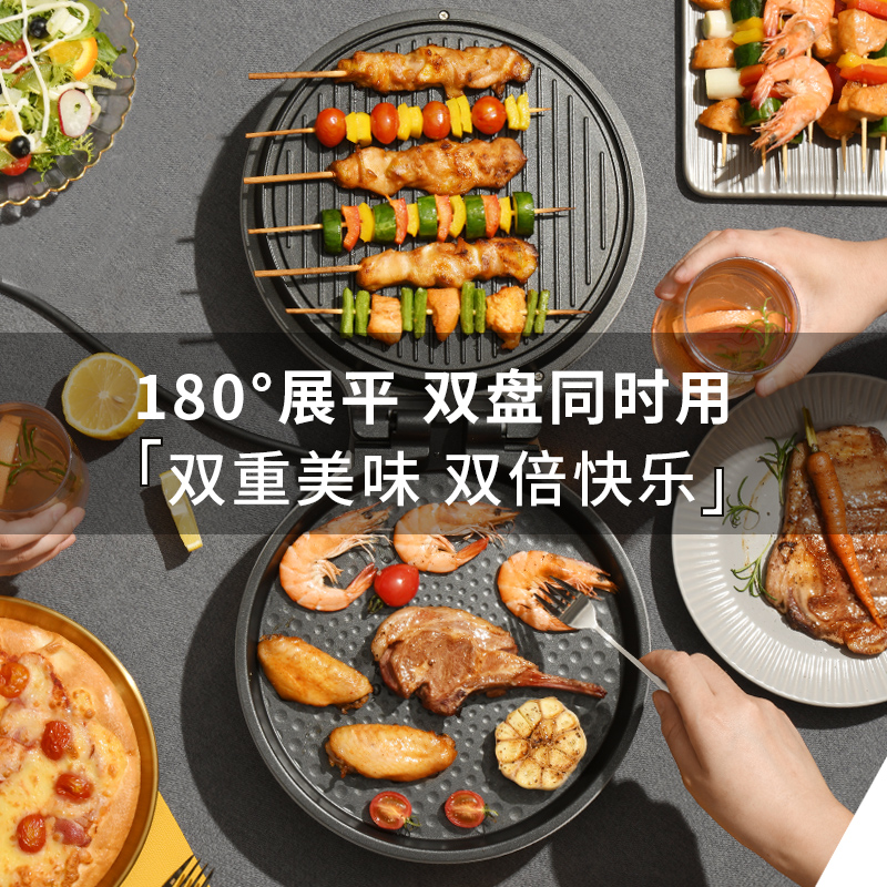 此款利仁 (Liven)双面加热电饼档LR-J2603,专注电饼铛27年,双面加热,独立控温,1200W速热,180°展平,25MM加深加大烤盘,发面饼煎饼煎饺均可,防烫大把手,操作简单易用,5万左右好评。真正的颜值担当与实力担当并存。