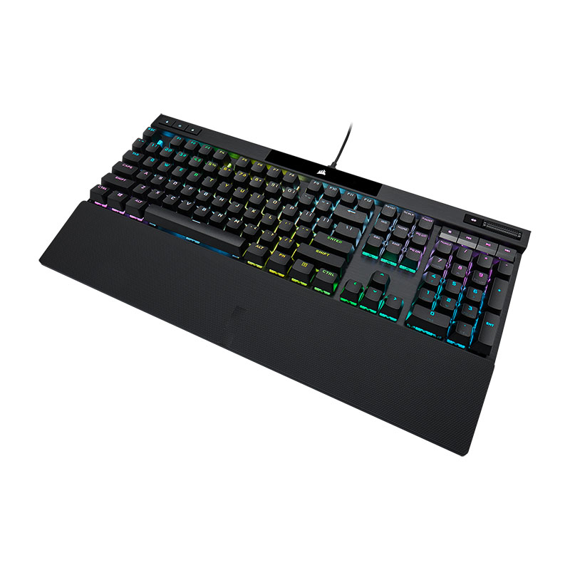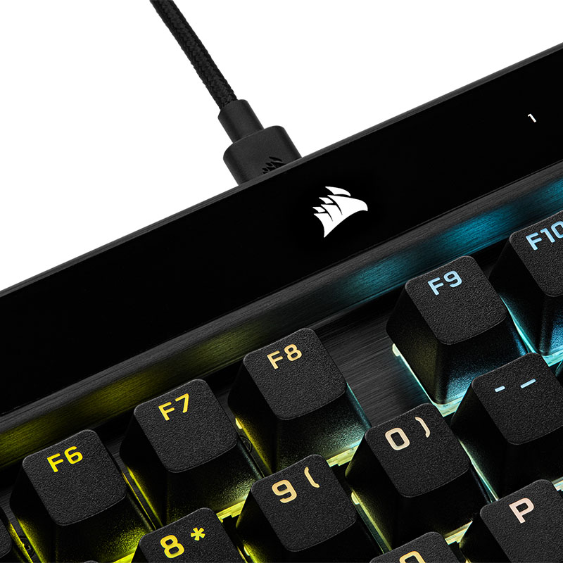 K70 RGB PRO,拥有拉丝铝框架和全尺寸布局,右上角保留铝制音量滚轮和专用媒体键,让玩家可以轻松调整。还可以屏蔽掉宏按键,并将背光设置为静态效果,并支持美商海盗船iCUE智能生态软件,可自定义每一个按键背光,支持1680万色,当然也支持背光同步。