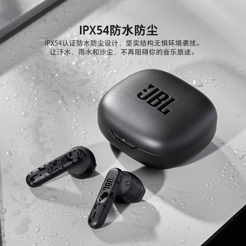 JBL WAVE FLEX 真无线蓝牙耳机升级12mm高品质动圈驱动单元。拥有四种智能音频模式,可开启耳机防丢功能和省电模式,自定义EQ均衡曲线增加可玩性。JBL麦风算法技术支持下,有效降低外界噪声干扰,增强拾取人声频段,拥有流畅清晰的通话体验。半入耳式耳塞,小巧便携。耳机仅重3.8克,32小时综合续航(耳机8H+充电舱24H)。采用IPX54认证防水防尘设计,蓝牙5.2双路传输,支持SBC、ACC高级音频解码技术。双路传输,无缝衔接,可随时在左右耳或双耳中切换单声和立体声,带来沉浸式音效体验。