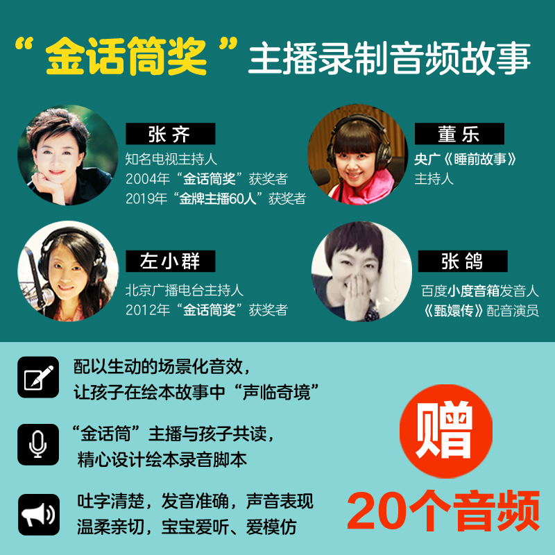 该套系精选了《我的爸爸叫焦尼》《根本就不脏嘛》《你很快就会长高》等篇目,由荣获凯特·格林威奖的画家、林格伦儿童文学奖作家创作,包含了亲情、友情、成长励志、习惯养成、自我认知、奇幻想象等多个主题,带给孩子成长必备的养分。该系列音频由荣获国家金话筒奖的主播录制,演播式的朗读包含了图画中间的内容,使整个故事更加完整,也为亲子阅读提供参考。亲子阅读指导手册包含阅读目标、提问参考和延伸活动部分,让家长在家中也能够有效引导孩子进行亲子阅读,达到教育目的。