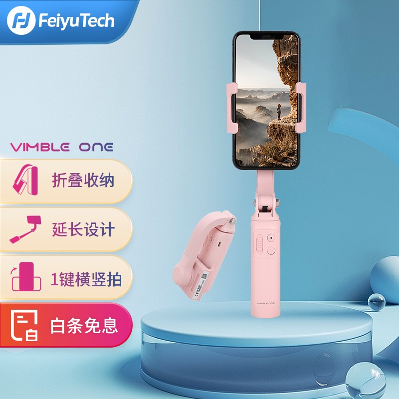 飞宇 Vimble One 手机稳定器,主打轻巧便携,可折叠收纳入袋,折叠后13cm长度,自重186g,携带方便。最长18cm可延长杆,满足不同场景拍摄需求。内置800mAhH电池,最高6小时长续航,畅拍无忧。手机宽度41mm~89mm , 最大手机尺寸6.6英寸,最大承重250g。展开状态:241*68.2*51.9mm,折叠状态:130.4*63.1*58mm。 内置防抖电机,增强拍摄稳定性,可控手机原生相机和美颜APP,通过APP可实现手势控制、重叠摄影、静态延时等多种实用功能。