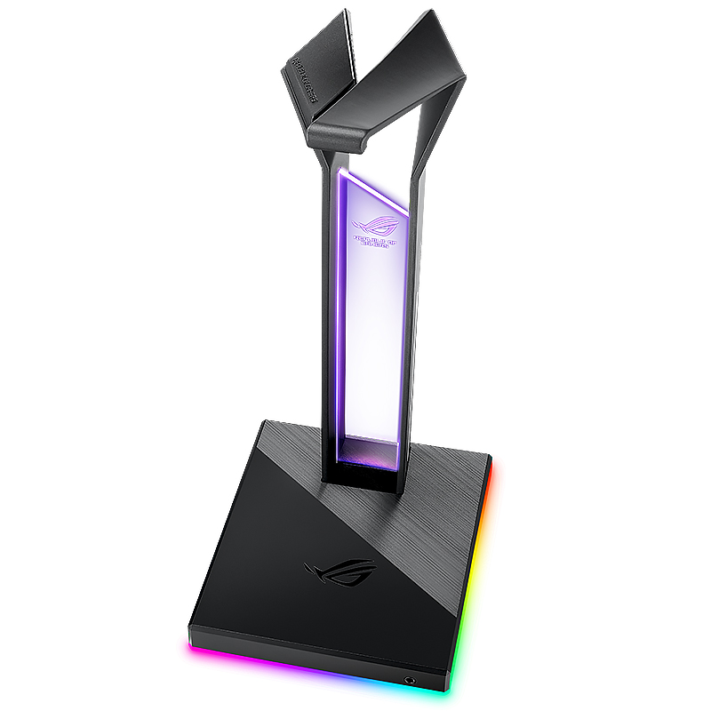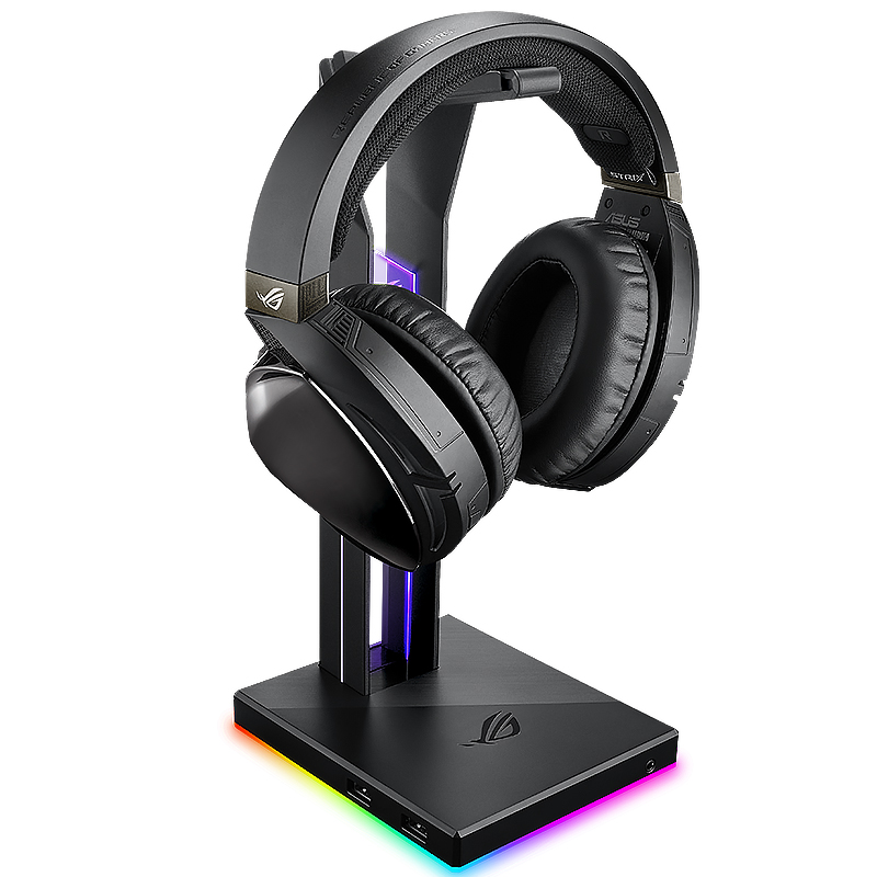 此款ROG独角兽耳机支架,拥有ROG1ogo炫彩灯效显示和360环绕RGB灯效,可自定义灯效,给人一种具有华丽酷炫的感觉,带有3.5mm音频输出,ROG Throne还提供额外2个USB3.1接口、1.5A的强电流,轻松接入其他设备,即插即用。传输更快,轻松分线。