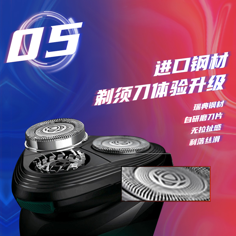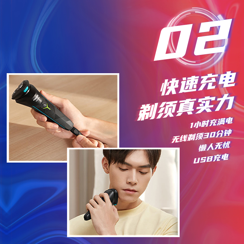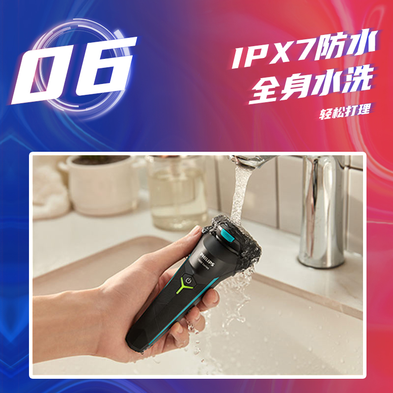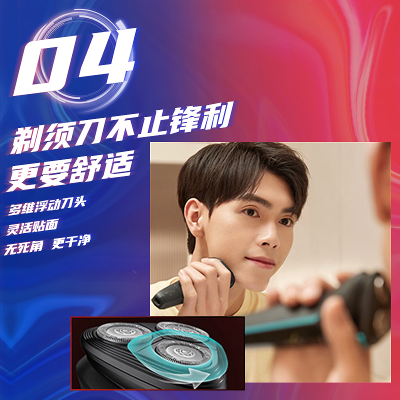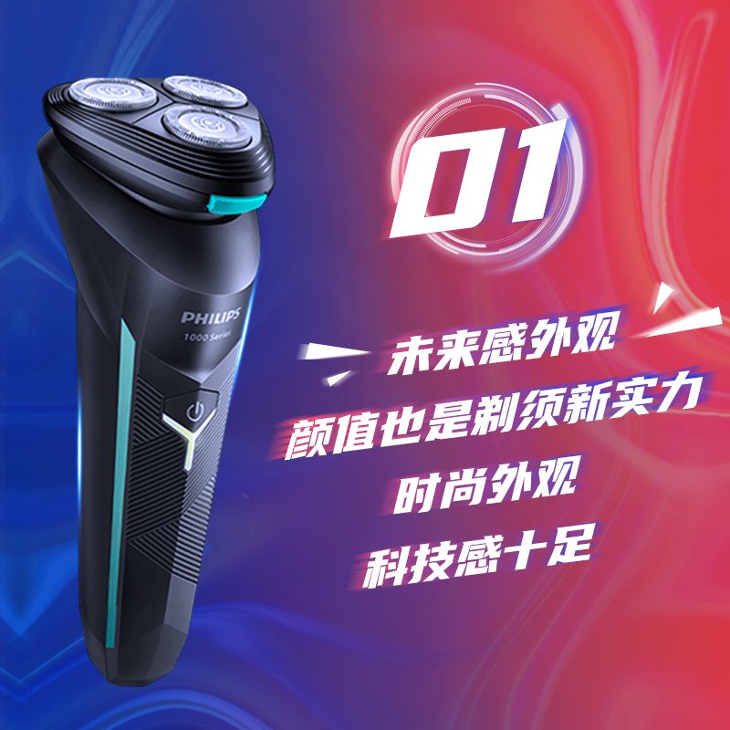 飞利浦(PHILIPS)男士电动剃须刀全身防水净剃胡须刀刮胡刀进口双刀头 赛博朋克款-S1115/02圆润刀头,减少摩擦。采用瑞典手 术器材用钢,抗敏感材质,避免肌 肤敏感。56700+次/分钟快速切剃,实现 快速净剃,减少胡须拉扯,保护皮肤。