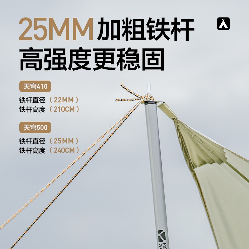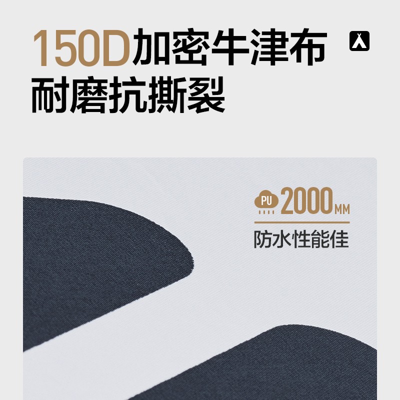 150D加密牛津布,耐磨抗撕裂。25MM加粗铁杆,高强度更稳固。大面积有效遮阳,单面内涂银。织带加强设计,牢固更抗风。