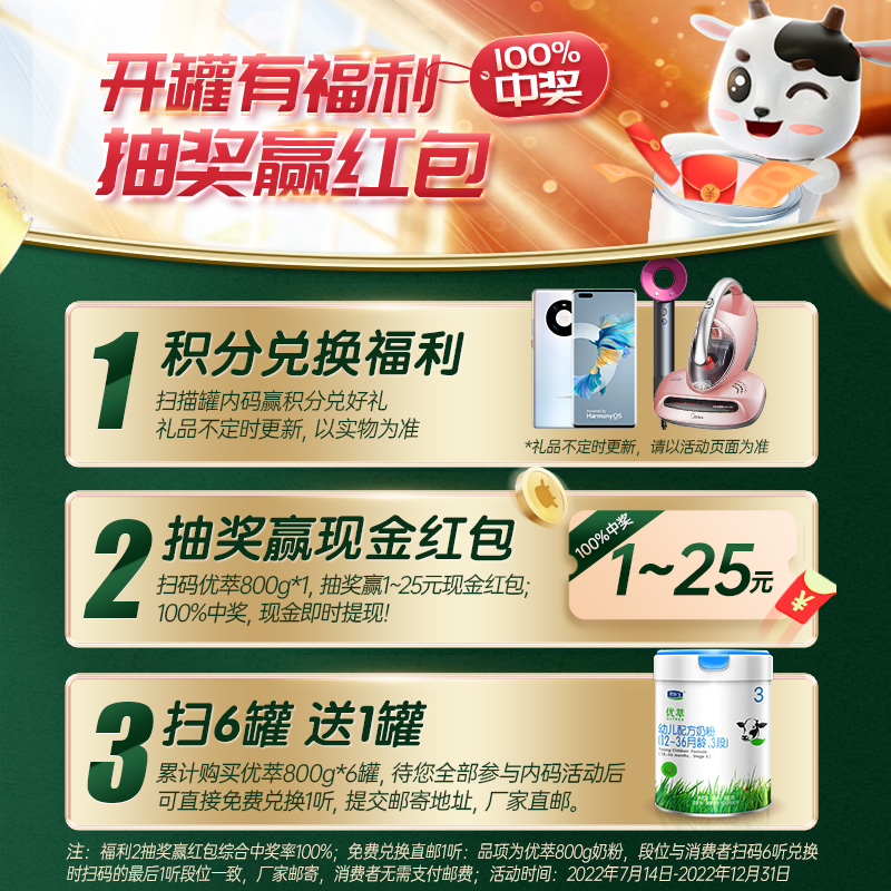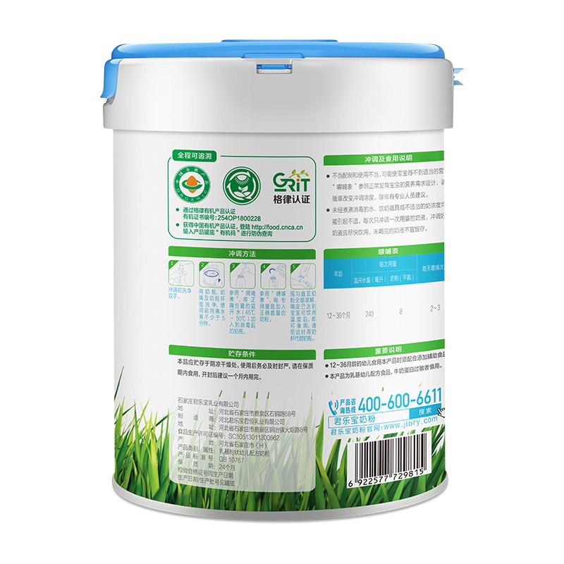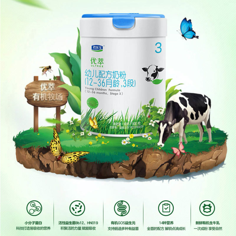 JUNLEBAO 君乐宝 有机优萃 幼儿配方奶 3段 800g*6听,小分子蛋白,科技打造易吸收的营养;活性益生菌B6-12、HN019,积聚活的力量,赋能吸收;14种营养,全面的配方,新鲜有机生牛乳,一次成粉,享受自然。