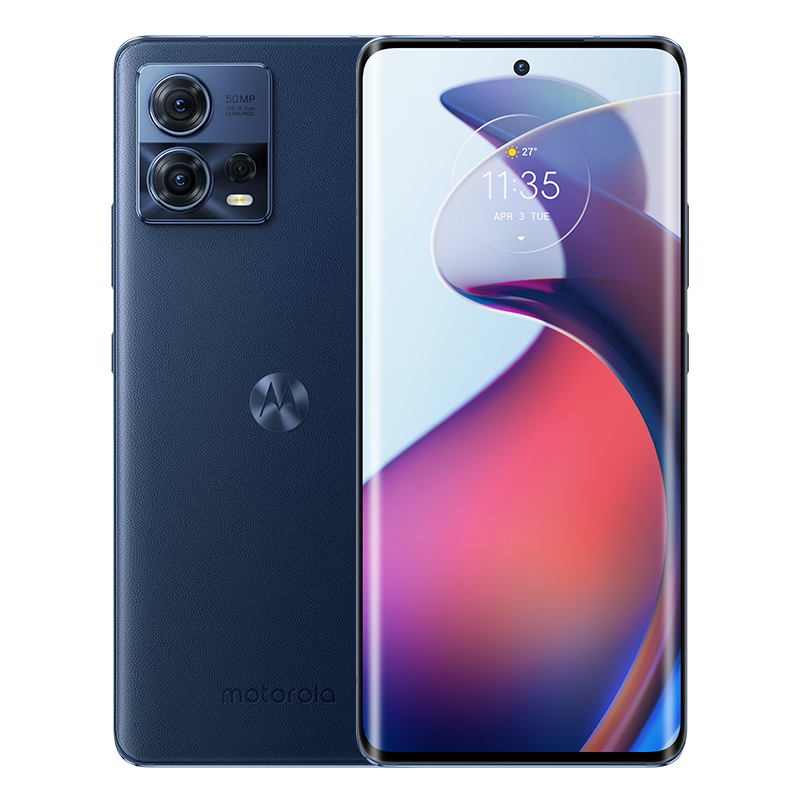 摩托罗拉 moto S30 Pro有月夜黑、春江蓝两种配色,整机采用6系航空铝1.88mm全金属中框,月夜黑背部采用微观丝绒玻璃工艺,春江蓝背部采用细腻皮革PU工艺,整机厚7.45mm,春江蓝配色重167g,月夜黑配色重172g。
