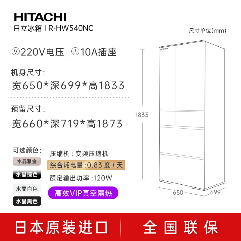 日立冰箱R-HW540NC,进行了薄壁设计,让内部空间的容量可以更大,实现520L的大容量,满足全家人对美食的追求。采用日立黑科技真空保鲜功能,整个冷藏室一直处于2℃的状态下,让食物的新鲜和口感都能很好保持。真空冰温区域,利用真空泵抽取冰温室内的空气实现真空环境,可以抑制食物氧化,食物的保鲜都不会出现结冻的情况。铂金触媒休眠保鲜蔬果室,蔬菜在蔬果室存放7天时间,水分的保留率依然可以达到95.7%左右。