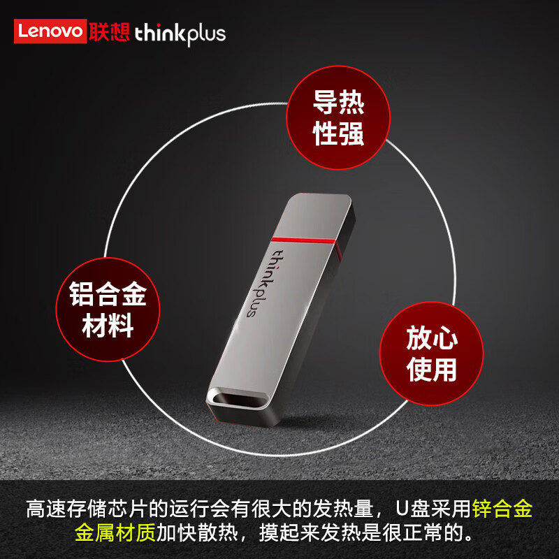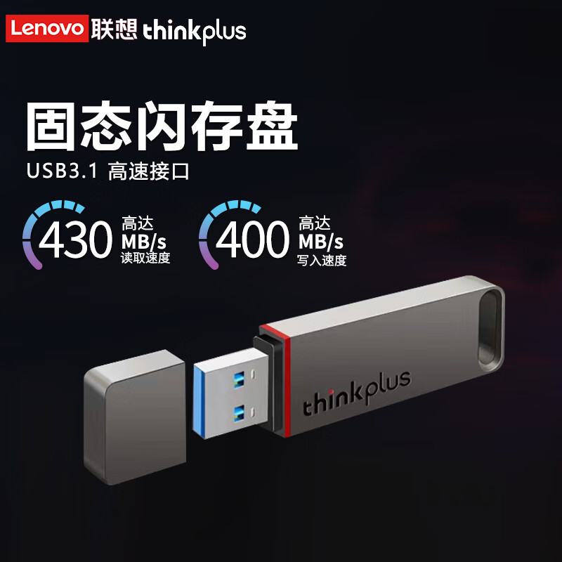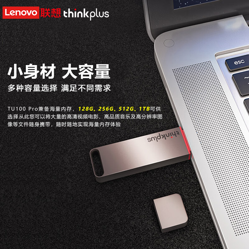 Thinkplus TU100Pro 谨慎采用锌合金金属打造而成,经久耐用。支持USB3.1 Gen1传输协议,采用固态闪存颗粒,拥有128GB/256GB/512GB以及1TB容量可供选择,连续读取速度可达430MB/s,连续写入速度可达400MB/s。尺寸:69.7*18*7.8mm,提供3年质保。
