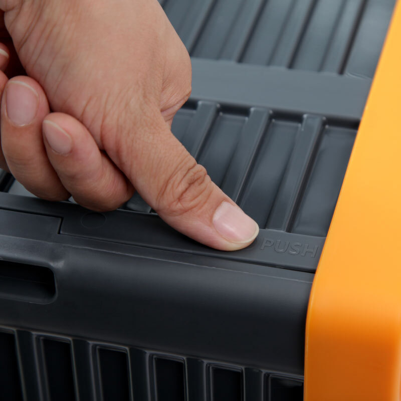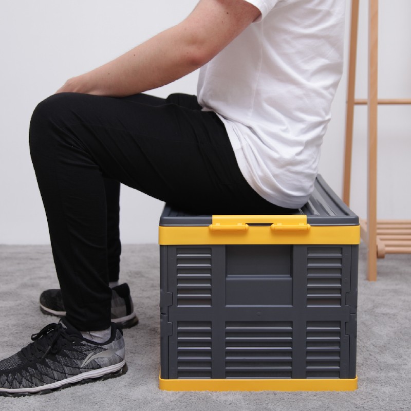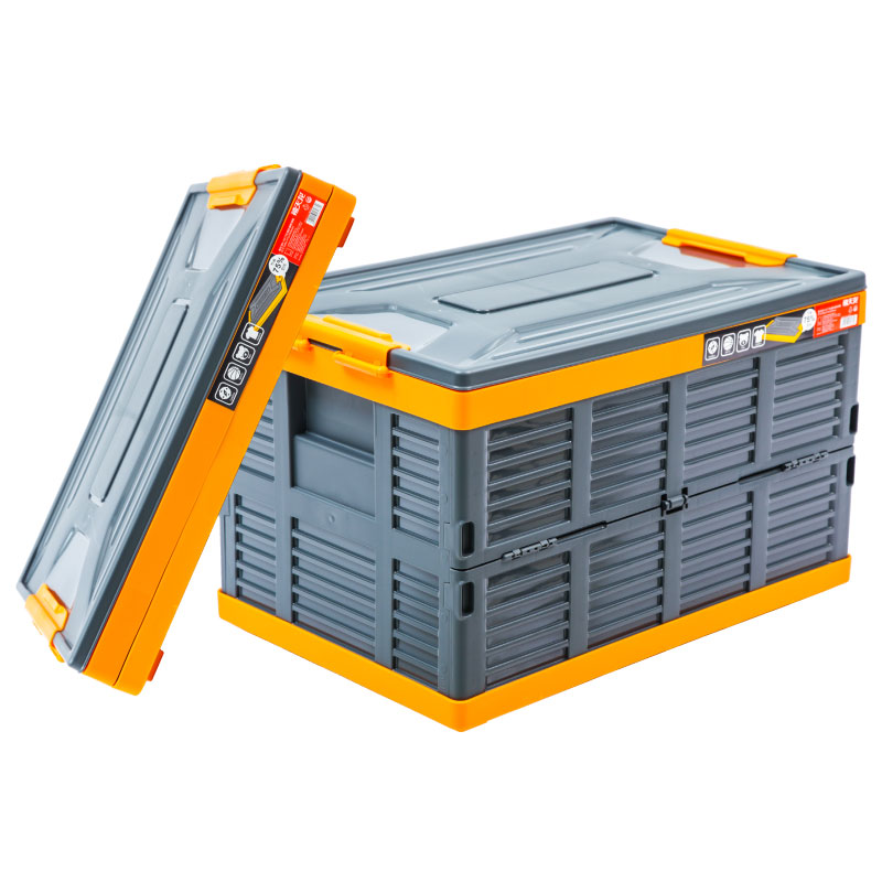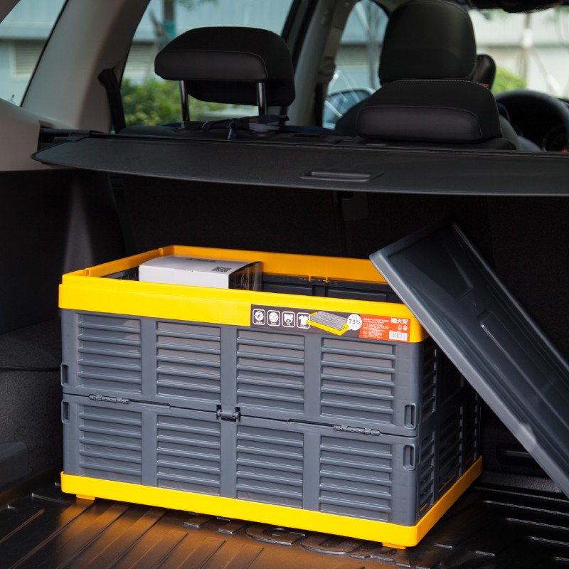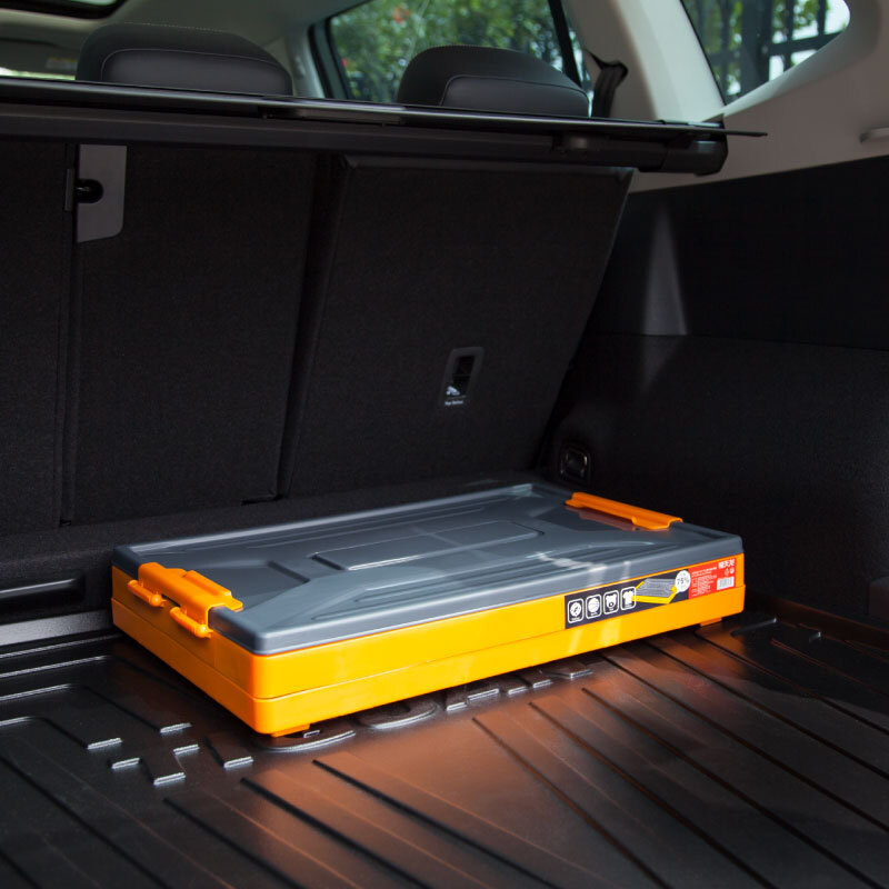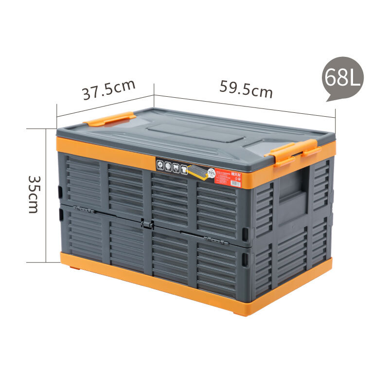 这款车载塑料收纳箱采用环保pp5原材料,底部蜂巢式加强劲设计,加固防震设计,结实耐用,箱内设有镂空隔板,减少晃动,箱盖凹槽方便牢固叠放。规格:59.5*37.5*35cm,68L