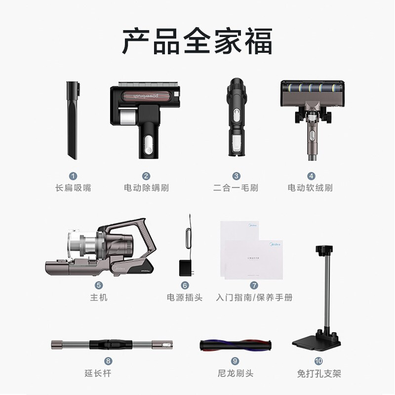 P7 MAX是美的于2020年推出的全新旗舰产品,核心亮点在于搭载可弯折技术,不用弯腰就能清洁低矮空间;吸入功率150W,续航方面,强劲模式10分钟、标准模式20分钟、持久模式70分钟,配备8*2500mAh电池,可拆卸独立充电;锥体材料中加入高效银离子抗菌剂,可抑制尘杯内的细菌滋生,避免二次污染;尘杯容量0.7L,支持一键倒尘;配件包括升级版电动除螨刷、尼龙刷头、长扁吸嘴、二合一毛刷、电动软绒刷、延长管,另外还配备直立式收纳架。