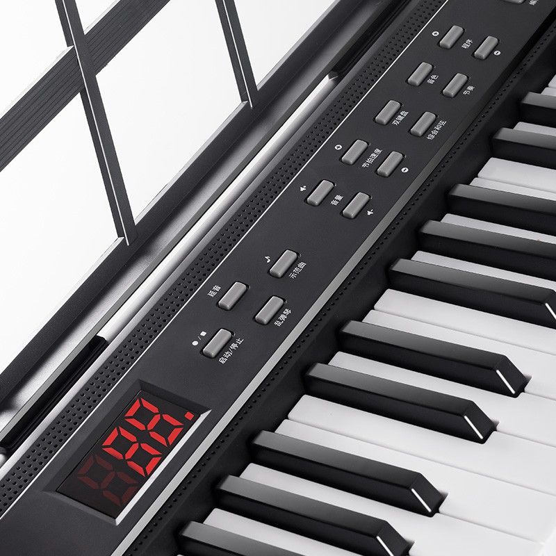 这款92cm,键盘是标准键(和钢琴一样2.2cm),成人可以用2.2cm标准键,92.5cm琴身长度,区别于儿童电子琴键盘小音质差的缺点,适合成人练习;支持充电/插电/放电池三种供电模式