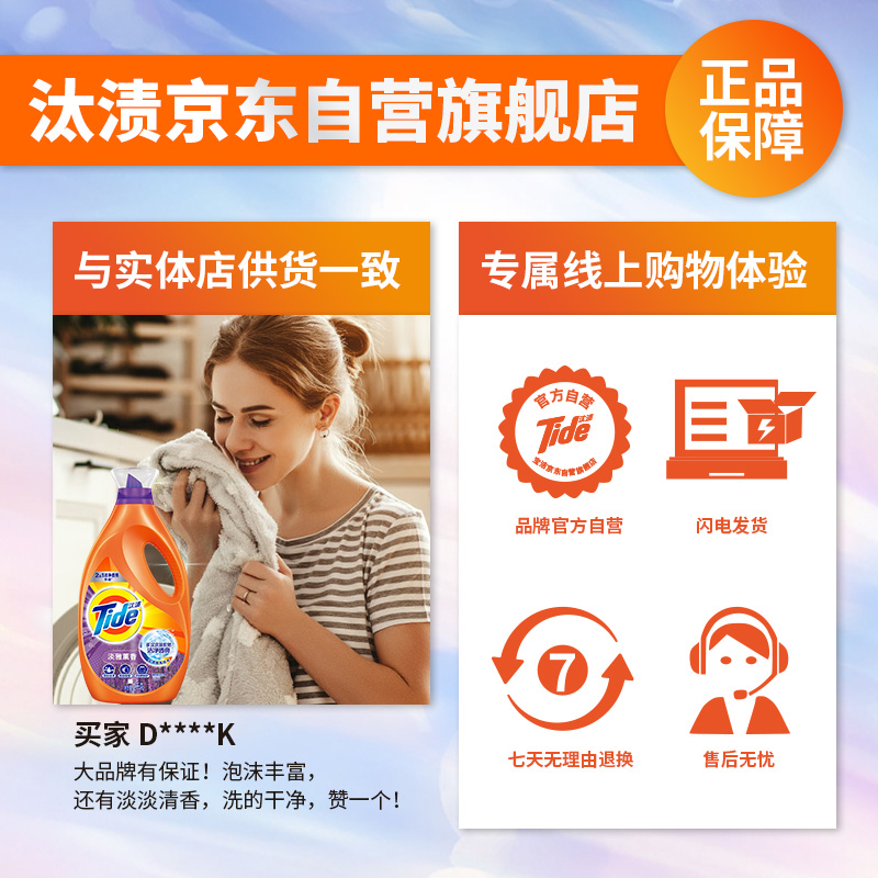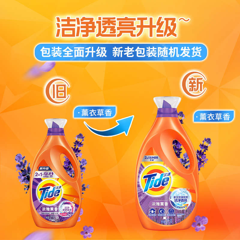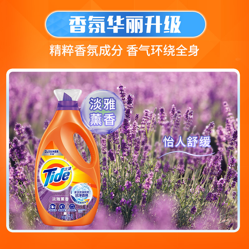 "汰渍是全球日化宝洁公司旗下洗涤品牌,于1946年诞生于美国。1995年进入中国,以推出日常洗涤去污除菌系列洗衣粉而闻名,也是全球最大的洗衣粉品牌之一。 Tide汰渍洗衣液,含进口原料,并通过权威机构检测;清新的薰衣草香气融合了丰富的果香,能够柔和洗衣液,洗后的衣物可以持久留香,味道很好闻;质地温和,不易伤手,机洗手洗都可;360度全效洁净,护衣护色效果好,适用于棉、涤纶、混纺、丝等各种材质的衣物,包括儿童衣物均可使用。