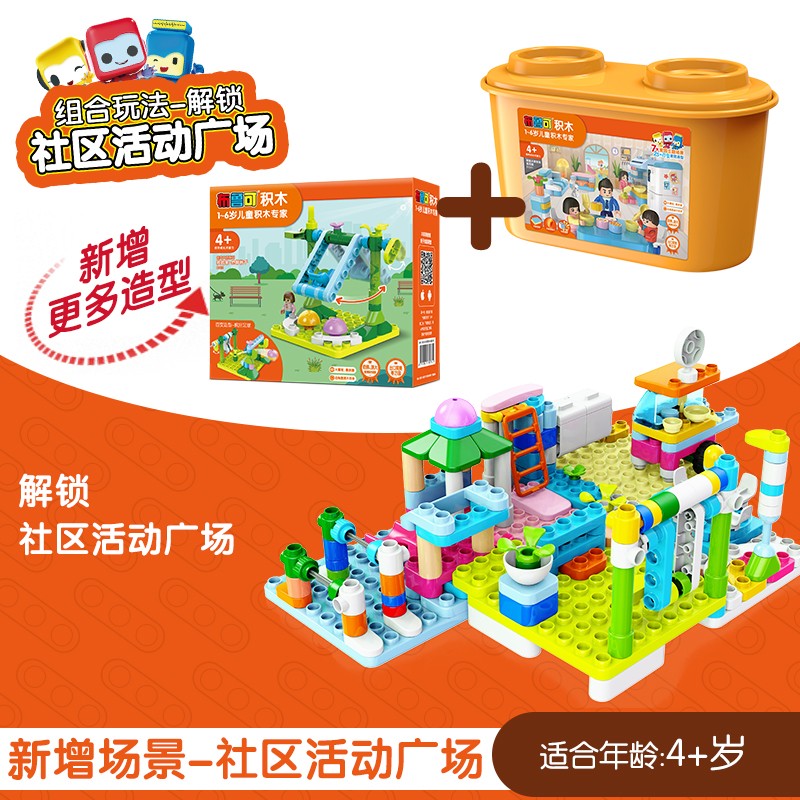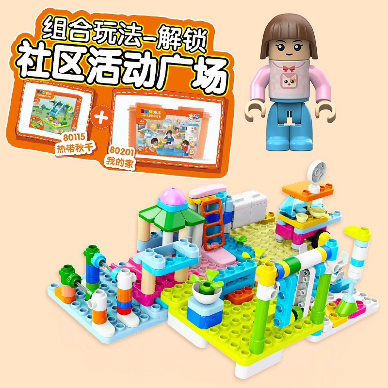 热带秋千场景包作为我的家园拓展包,本身可以拼搭成为可摆动的秋千之外,还可以变形为疯狂足球场景,玩法是摇动手柄、击打小球进门即为成功。该拓展包还能与我的家套组组合成为社区活动广场,内含小吃贩卖车、空中漫步、垃圾桶、旋转椅、滑滑梯和高低杠等细节,拓展更丰富的玩法。
