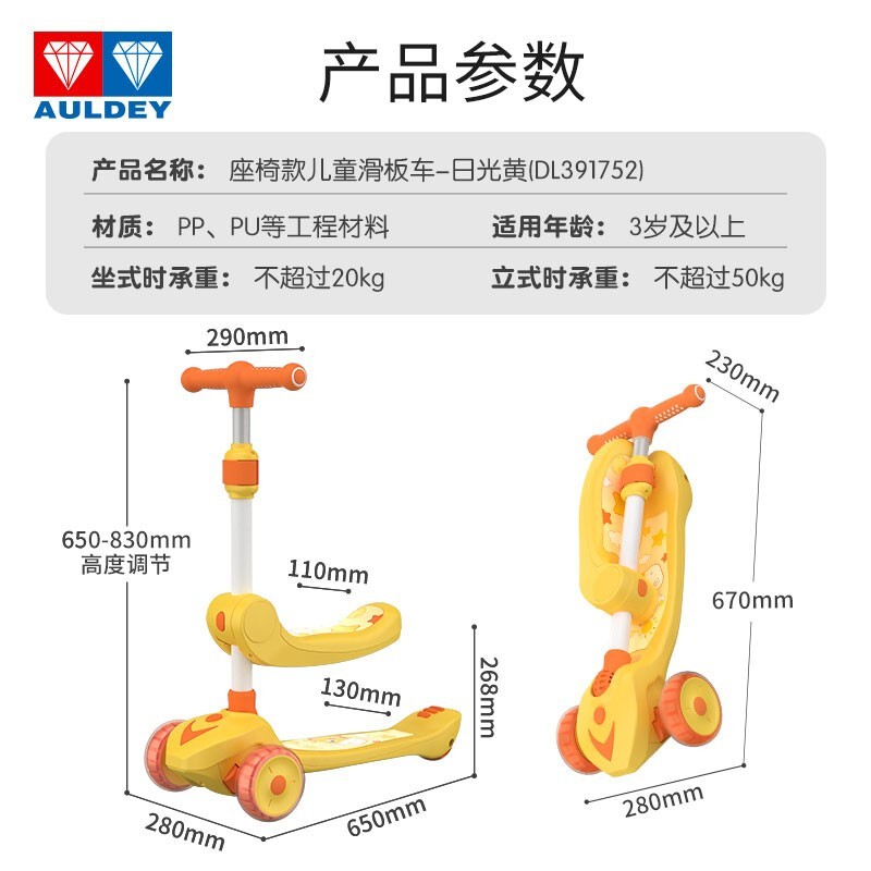 AULDEY 奥迪双钻 儿童滑板车,可爱萌趣插画,真正的颜值派,7大安全防护,妈妈更放心,4档调节,妥妥用到12岁。