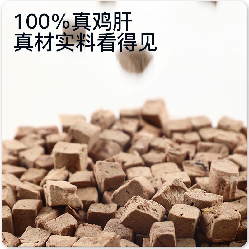 宠物零食冻干鸡肝,含有蛋白质、维生素A,通过冻干工艺制作,更好的锁住营养成分,为宠物日常所需蛋白质提供支持。喂食方式可直接喂食、温水泡水泡食或捏碎与主食同时喂食。