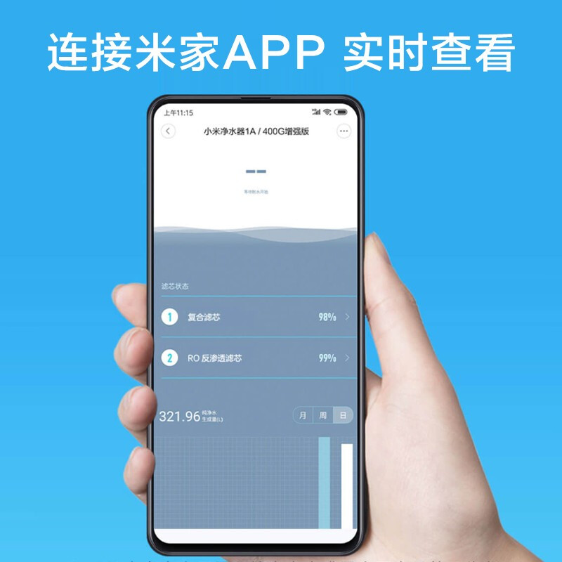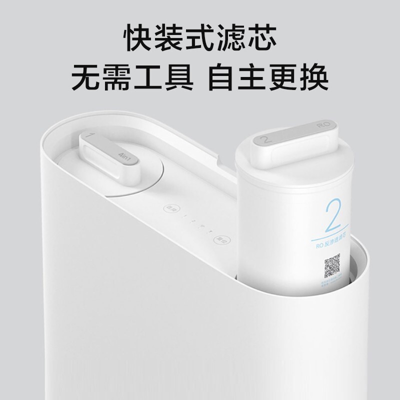小米净水器400G增强版于2020年6月推出,和最早推出的厨下式400G净水器相比,机身更为纤薄,整机厚度为12.7cm;2芯5级过滤结构,第1级用来去除泥沙、浑浊物、铁锈等,第2级为前置活性炭棒,用来吸附余氯、异色、异味等,第3级为阻垢剂,用来抑制水垢凝结,第4级为RO反渗透滤芯,第5级为后置炭棒滤芯;根据官方数据,4合1增强复合滤芯1年更换1次;其它核心参数方面,净水流量1L/min,额定总净水量3600L。