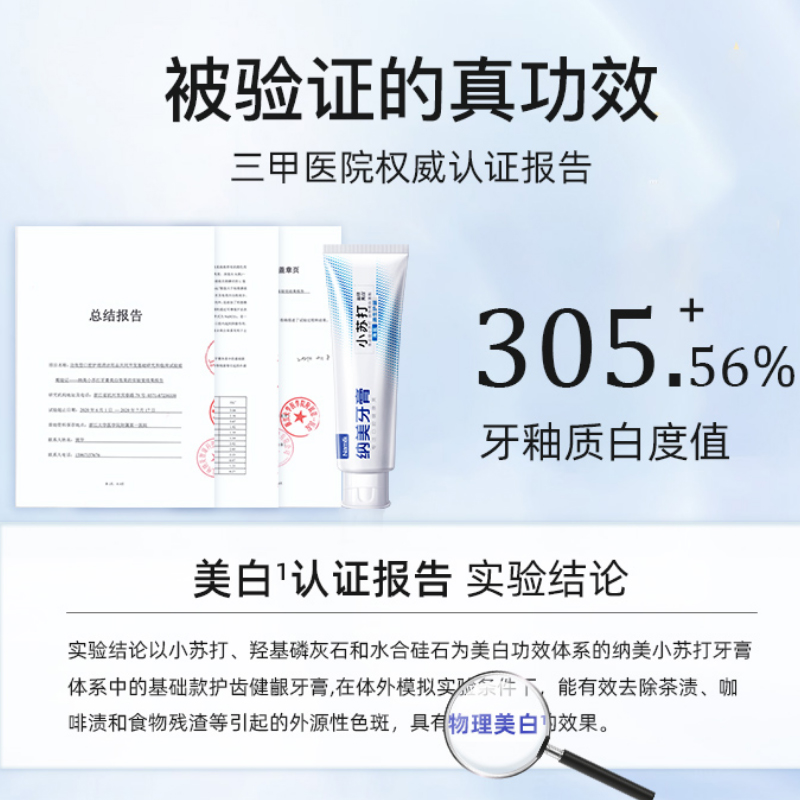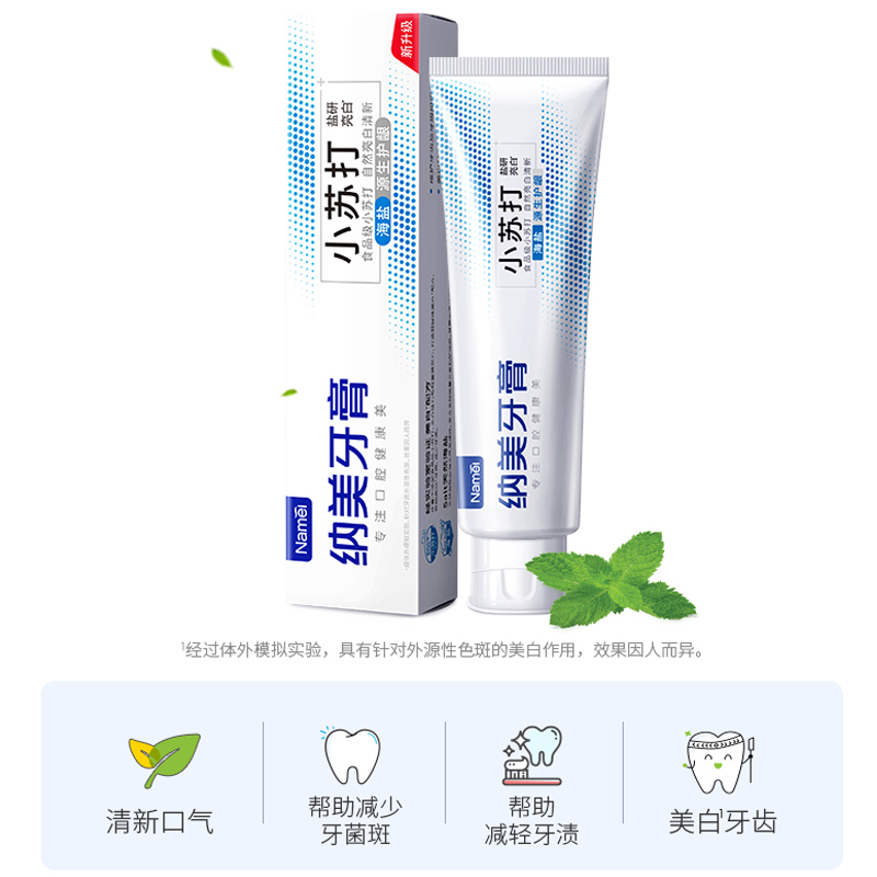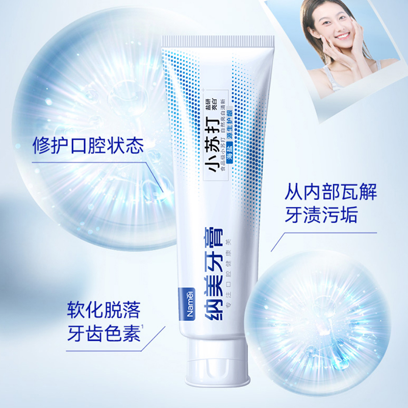 纳美是专注于将高科技运用于口腔护理的专业品牌,旗下多款牙膏和牙刷产品都受到了广泛的认可。这款海盐薄荷小苏打牙膏,添加食品级小苏打,可以帮助减少牙菌斑,天然海盐含有丰富的矿物成分,软化牙垢,并防止牙垢堆积,长效保持牙齿表面的洁净,清新薄荷净化口气,持久维护口腔健康。
