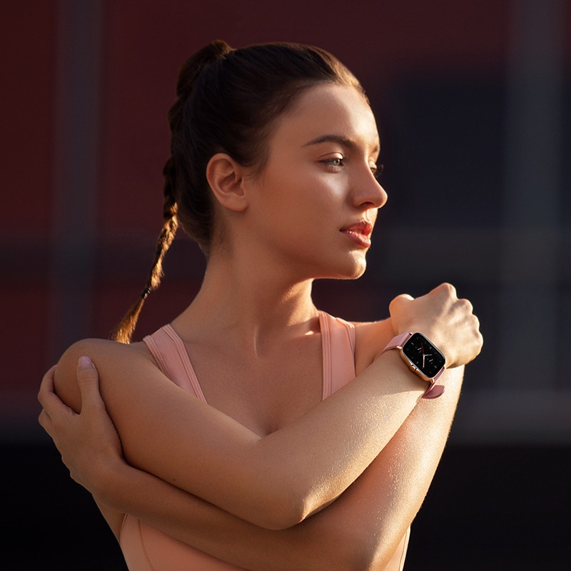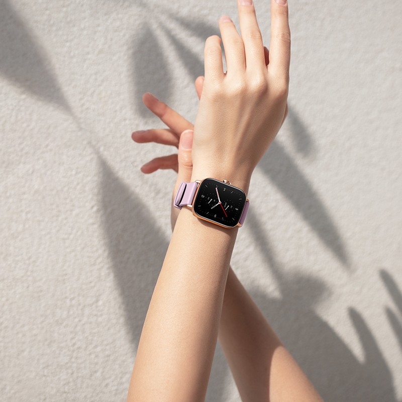 GTS 2e 智能手表在外观上,采用无边界设计下精工雕琢的2.5D曲面玻璃,轻薄佩就的同时营造出了极强的一体化视觉表现。此外还突破性地在手表屏幕表面引入了镀膜技术,玻璃真空镀膜,表身采用铝合金表身,哑光磨砂底壳。屏幕采用1.65英寸的AMOLED超视网膜显示屏,像素密度高达341ppi。