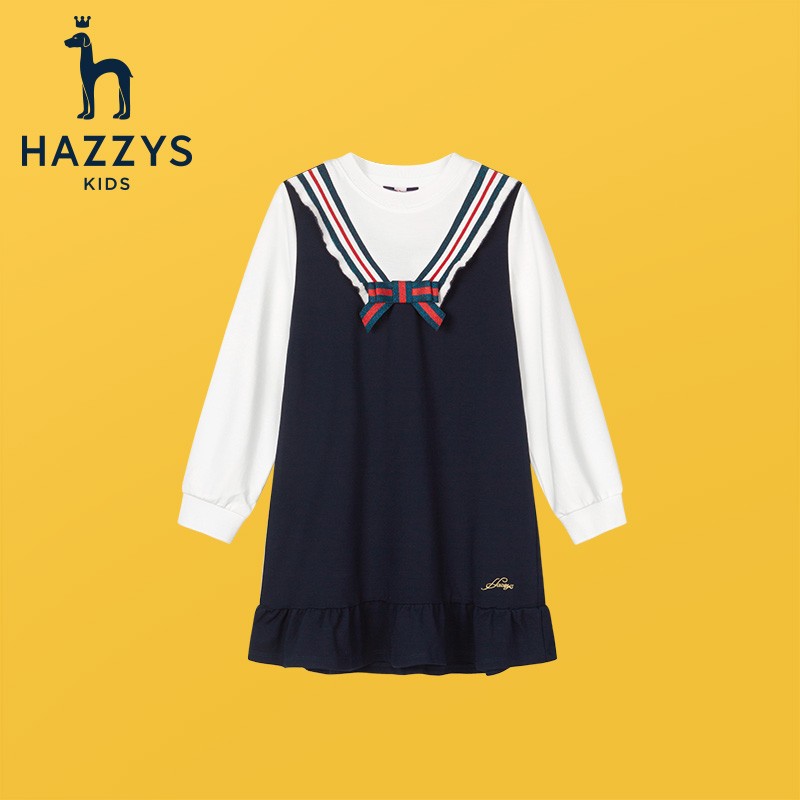 当前的位置: 首页 > 今日值得买 > HAZZYS品牌童装哈吉斯女童儿童连衣裙春秋新品中大童荷叶边裙学院风裙子 藏蓝 160cm