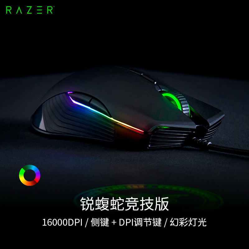 锐蝮蛇采用的是原相订制的PMW3389光学引擎,这款引擎也是雷蛇与原相科技定制的传感器,从参数上来看,16000的DPI和450ips的精度和速度,要比原相目前的旗舰传感器PMW3360要更好一些。加速度方面,最高为50g,与PMW3360一样。在微动方面,与欧姆龙合作开发的Razer机械式微动,能更快地进行相应,适应游戏需求,寿命也达到了目前市场上最高的5千万次。其他方面,1680万色的RGB灯光,支持即将要推出的雷云专业版驱动程序。