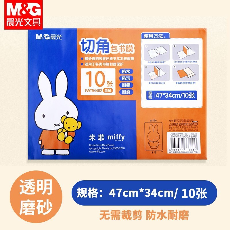 晨光 自粘切角包书膜 A4大号10张,柔软加厚磨砂书皮,采用EVA材质制作,异味阻隔性佳。使用柔软,触感舒适。