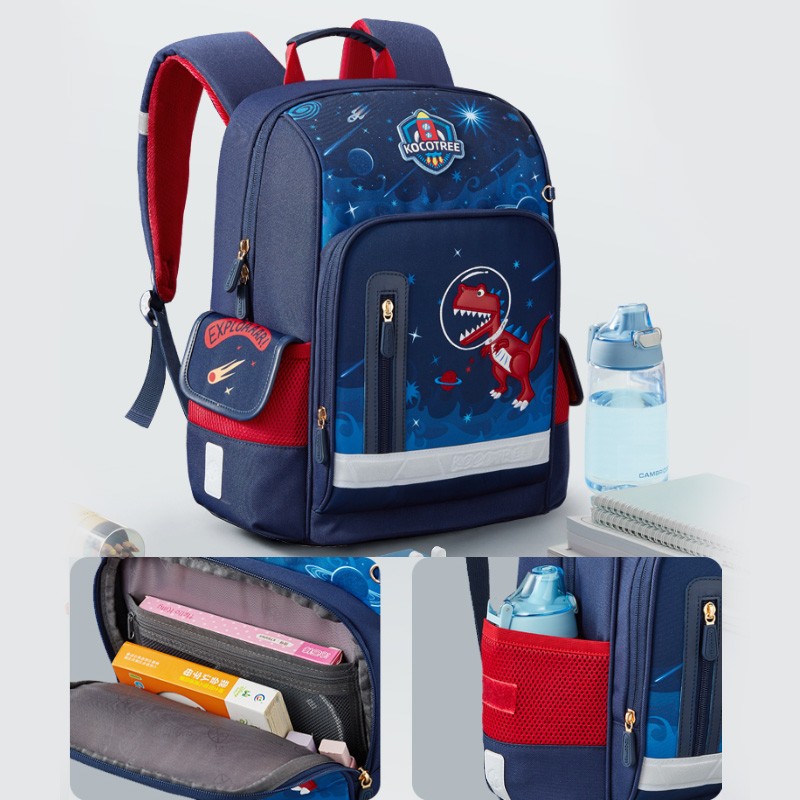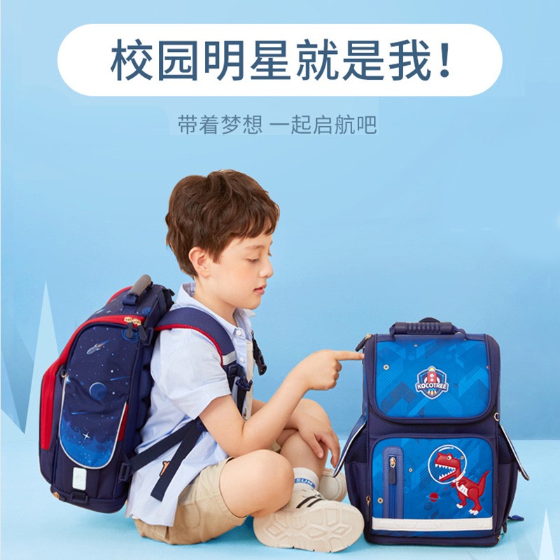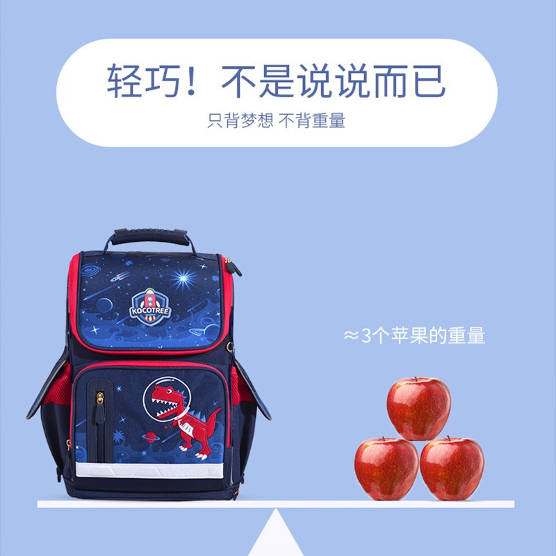 kocotree kk树 恐龙校园系列 学生双肩背包 KQ20129L,采用EVA 3D发泡技术,弹力支撑更舒适,柔软贴合减轻背部压力;两侧隐形收纳空间,高密度慢回弹海绵,透气多网孔结构透气面料。