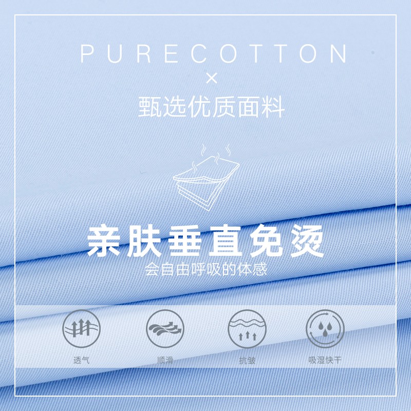 平纹免烫商务典范,3D立体剪裁工艺。将进阶免烫防皱工艺融入衬衫处理,结合纤维定型记忆360°立体塑形的同时保留亲肤的质感。亲肤垂直免烫,会自由呼吸的体感。