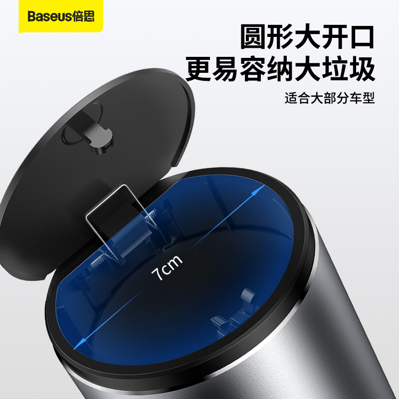 密封盖子隔离异味,牢牢锁住生活垃圾的异味,保证车内空气清新;可放置于杯架、车门储物格、扶手箱等位置;圆形大开口,更易容纳大垃圾;500mL大容量,容量升级,满足日常垃圾空间所需,再也不担心放不下,套筒式固定,垃圾袋不易滑落,保持干净环境。