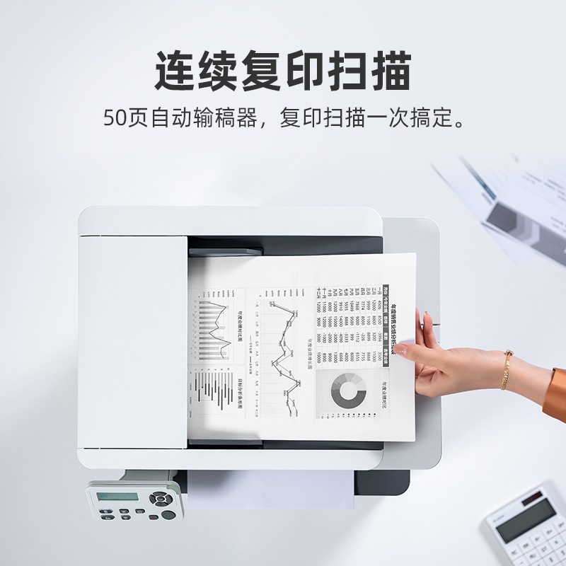 奔图 M7160DW一体机,打印幅面为A4,支持自动双面打印,配备50页自动输稿器,支持无线打印。耗材采用鼓粉分离设计,支持证件一件复印。打印方面,最大打印分辨率为1200×600dpi。打印速度为33ppm。首页打印小于8.2秒。扫描方面,扫描分辨率为1200×1200dpi。扫描速度为24ppm(A4)。复印方面,复印分辨率为600*600dpi。复印速度为33cpm.