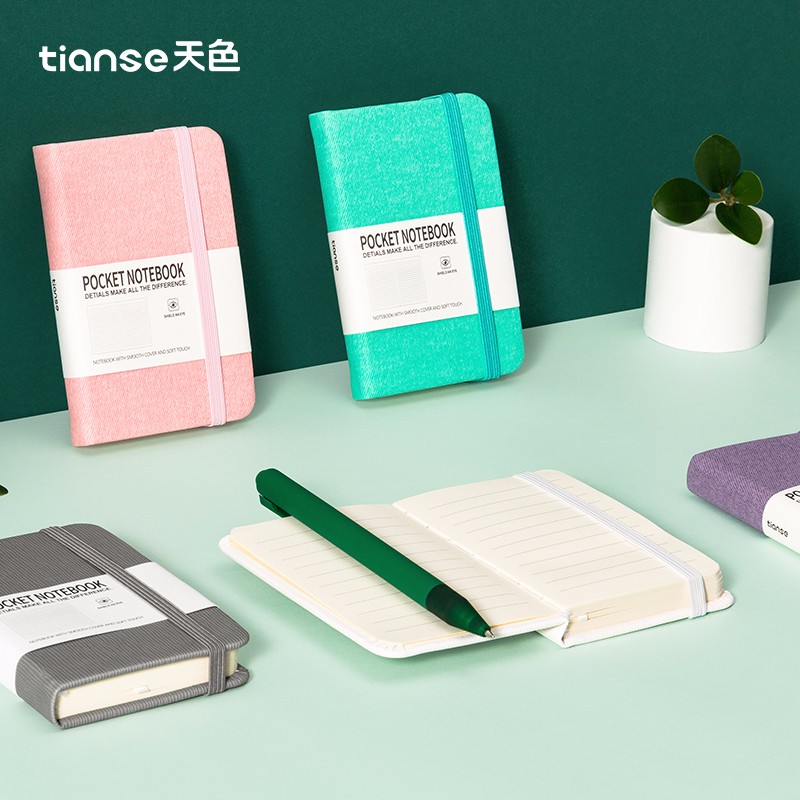 ianse 天色 TS-4029 迷你纹面绑带笔记本 灰色,规格为A7/100张,mini随行笔记本,小巧便携,简约清新的色调,美好生活,随时记录;mini的口袋笔记本,口袋也能装得下的笔记本;自带的弹力绑带,可固定本子或票据纸张,美观实用,增强设计感;硬朗的封面材质,以及舒适纹理的布面,让你对它爱不释手;缎带书签方便翻阅进度,使用舒适顺手;采用80g加厚道林纸,可双面书写,不洇墨,其选用米黄色道林纸;精密车线,不易散页;硬质外壳圆润边角,独到细节,品质与颜值同时在线。