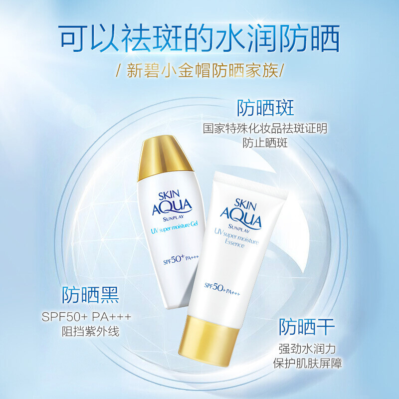 Mentholatum曼秀雷敦是国内知名度超高的平价护肤品牌,这款Mentholatum 曼秀雷敦 新碧双重保湿水感防晒露,采用了solarex-3三重护肤级防晒技术,具有防紫外线、防止晒伤及晒后修护三重功效,防晒指数高、波段全,不会厚重、拔干,大量涂抹时脸部的泛白度也很轻微。颜色微黄,有着水润感的乳液质地,添加了纳米透明质酸、水活银耳精华、维C,上脸能感受到保湿度,防止日晒造成的水分流失,缓解黑色素形成,减淡色斑及痘印,非常适合混干皮、中性皮、干性皮使用,也适合身体防晒。