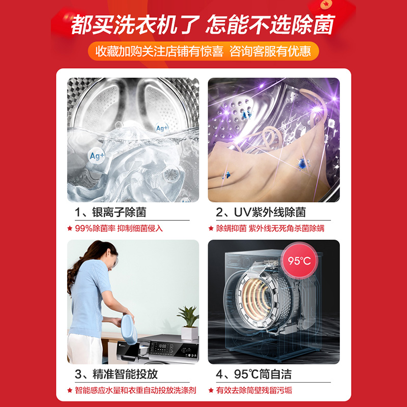 这款小天鹅(LittleSwan)型号为TG100VT616WIADY-T1B的10公斤滚筒洗衣机,采用活性银离子全时巡航主动除菌,除菌率达99.99%,经紫外线光照形成保护膜,达到48h长效抑菌保护。还采用I-Smart智能投放洗涤剂,是通过自动感应衣重和水量,智能匹配洗涤剂用量减少化学成分残留,衣服干净又健康。内置BLDC变频电机,运行噪音在52分贝左右。ACP抗菌门封圈,抗菌率高达99.99%,防止发霉滋生细菌。控板8°倾斜,轻松操作不弯腰,还配备安心童锁,防止宝宝误操作。内置筒灯避免漏拿衣物。95℃高温筒自洁,防止洗衣二次污染,还洗衣洁净空间。