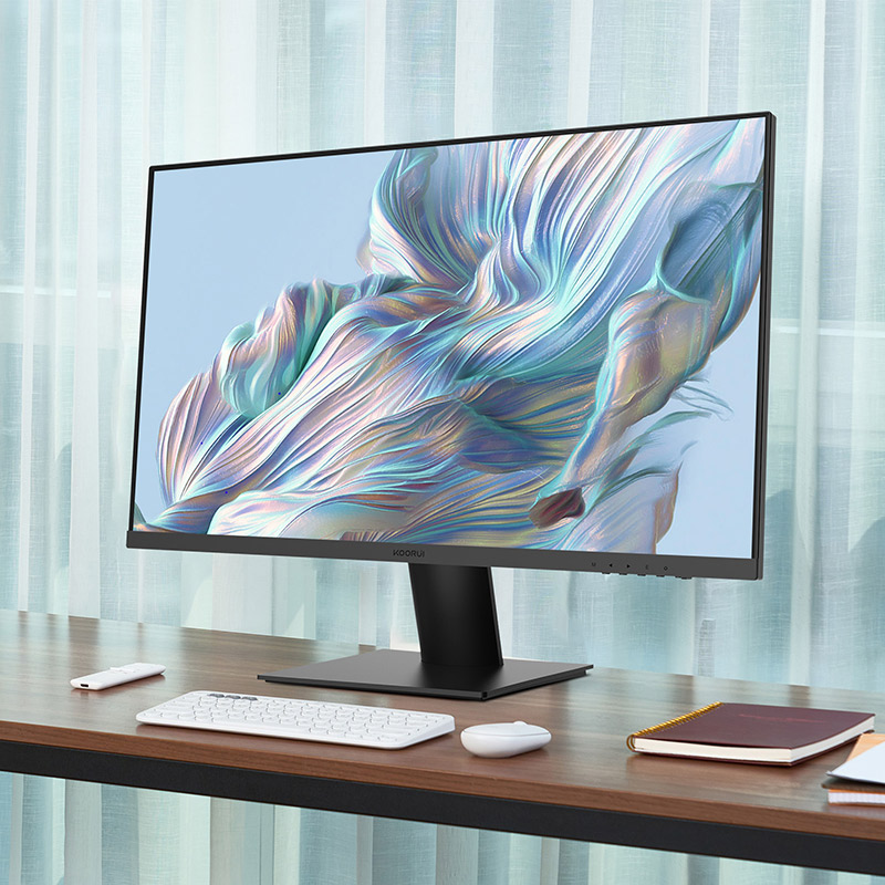 显示器采用VA面板,27英寸绚彩屏,2mm微边框,高达90%屏占比,拥有178°宽广可视角度,1920×1080超清画质,75Hz刷新率游戏更流畅,99%sRGB色彩范围,搭配1670万色数(8bt),采用DC调光不闪屏技术。