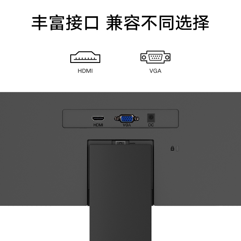 接口方面,拥有HDMI、VGA两种主流接口,传输高质量稳定的数字信号,满足工作与生活各种需求。