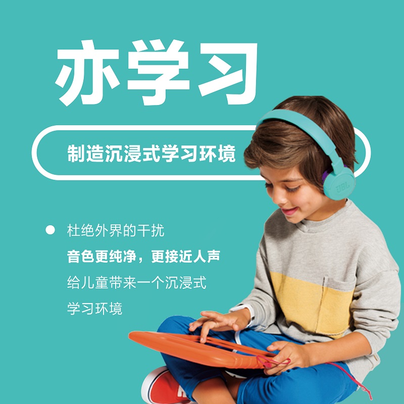 JBL JR300 ,是面向儿童开发的一款有线耳机,在音量上设有85db安全分贝保护,一定程度上减少大音量对耳朵造成的损伤;材质设计上也为孩子考虑,柔软的耳罩和头梁,搭配可伸缩耳罩,使用时可调节至适当的尺寸,超轻的材质长时间佩戴也毫无压力。音质上追求纯净输出,渲染少,能让孩子听到更标准的英语等发音;全封闭设计,学习时使用还有利于提高孩子孩子的关注力,让孩子全身心的投入到学习中,隔绝外界噪音的影响。