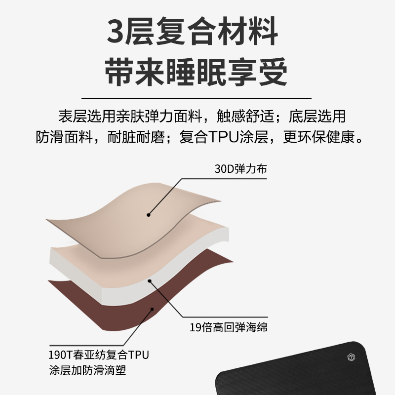 表层选用亲肤弹力面料,触感舒适;底层选用防滑面料,耐脏耐磨;复合TPU涂层,更环保健康。