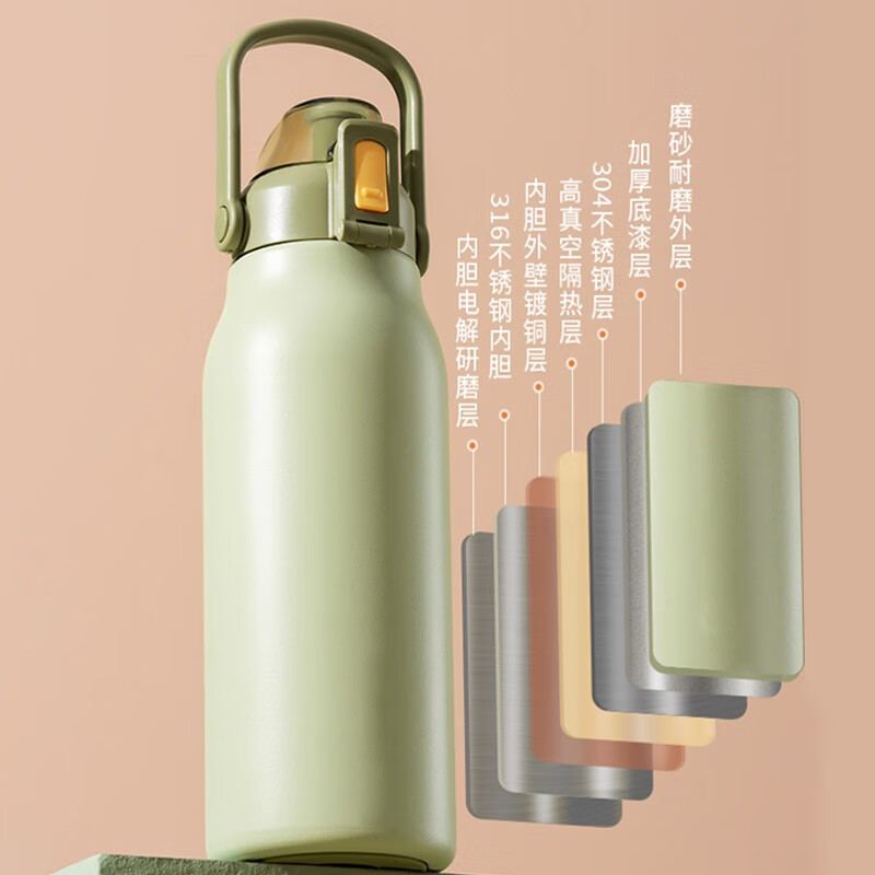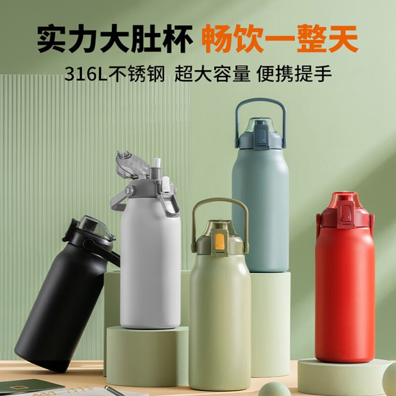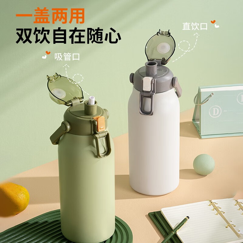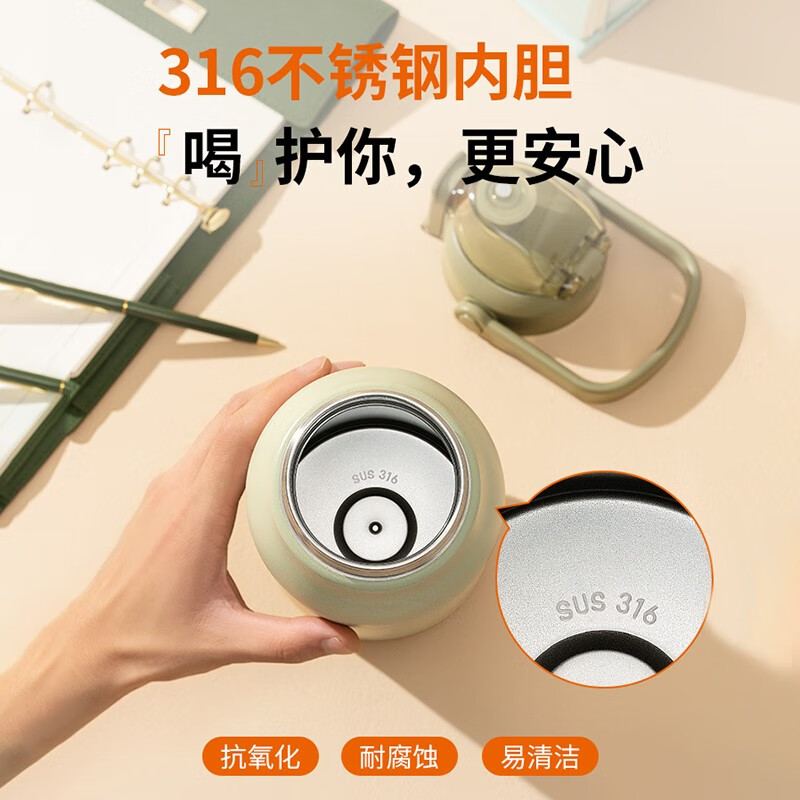 直饮+吸饮双模式,喝水更方便。内胆采用316不锈钢,可装各式饮品,不易发生化学反应。安全防漏设计,摇晃倒置不漏水,出行装包无烦恼。5色可选,pick你爱的颜色。