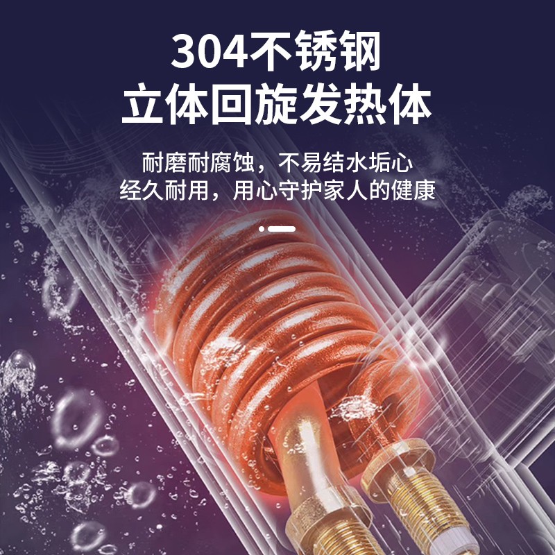 即开即热,温暖不用等待,终端加热出水,搭配大功率加热管经过加热直接出水,无需等待,水电隔离,把安全放在首位,水路电路分离设计,通道一体成型,不漏电、不漏水,304不锈钢立体回旋发热体,耐磨耐腐蚀,不易结水垢心经久耐用,用心守护家人的健康。