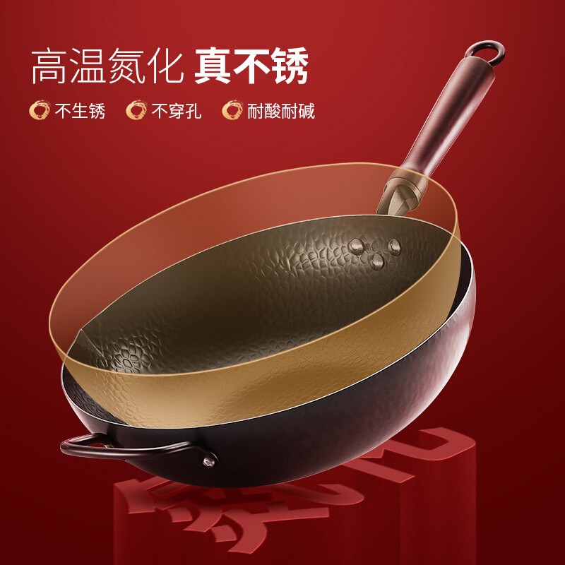 华帝(VATTI)炒锅,无涂层电磁炉通用,高温氮化,360度全身渗氮工艺,形成致密氧化表层,高纯铁铸造,表面无任何化学涂层,抗刮擦,煎炒洗刷无需小心翼翼,平底不带盖30cm。