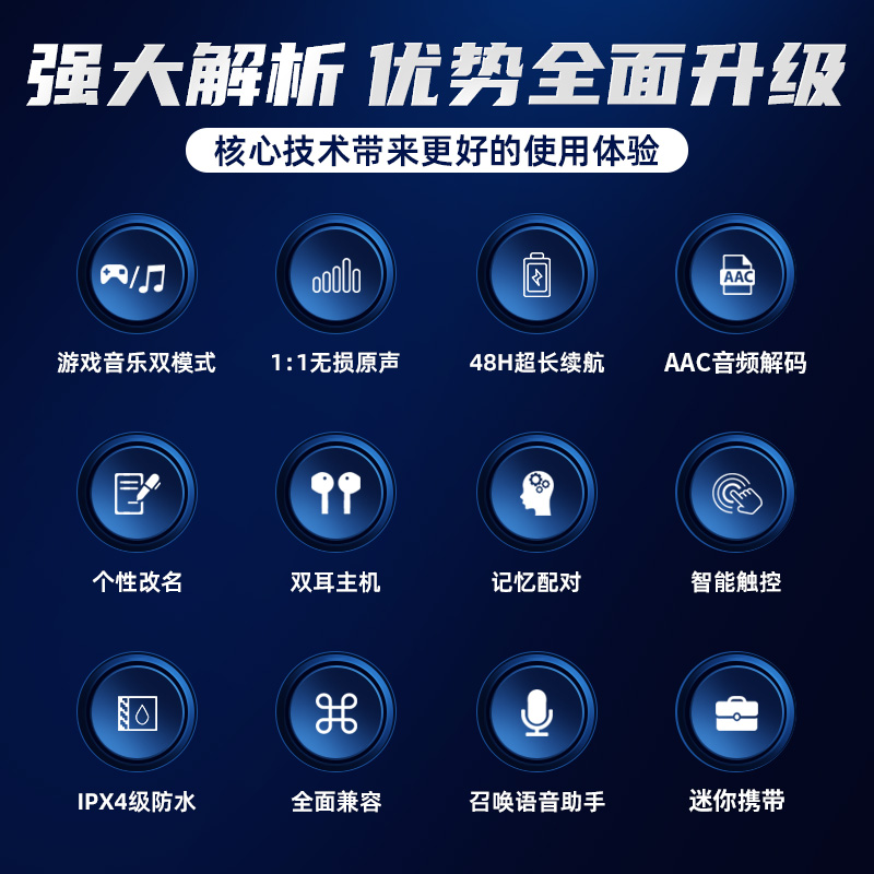 品存 Musicpods 真无线蓝牙耳机采用13mm大直径复合膜振膜喇叭,复合膜喇叭赋予声音更多的可能性。支持单双耳无缝切换。5.0蓝牙,最大支持10m距离连接,采用USB-C充电口设计,充电更快速。单边耳机使用约6小时,与充电仓搭配可使用2天以上。