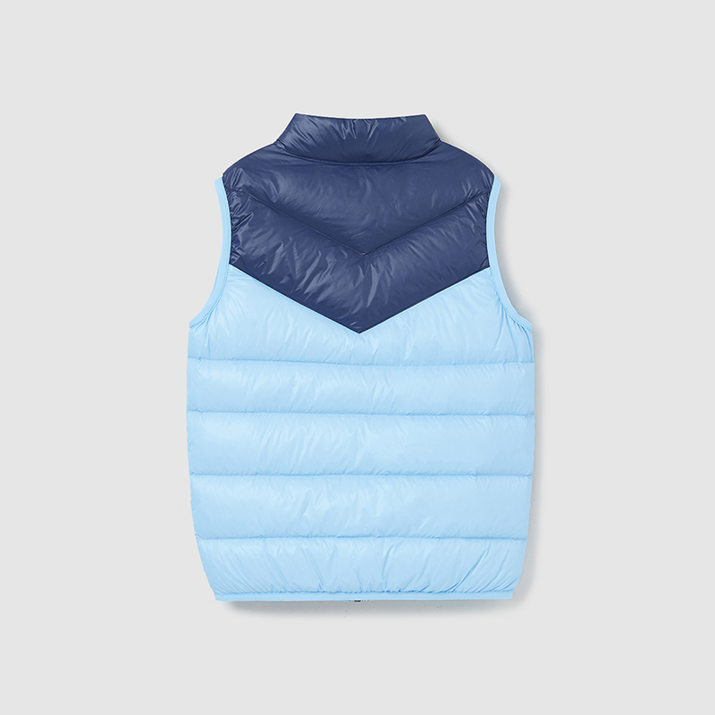 儿童羽绒马甲选用高蓬松度的无梗白鸭绒,将寒冷拒之门外。拉链马甲款式,高蓬白鸭绒填充。 买一件,穿三季,外穿、叠穿想怎么穿,就怎么穿。