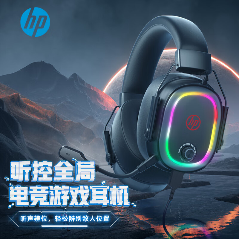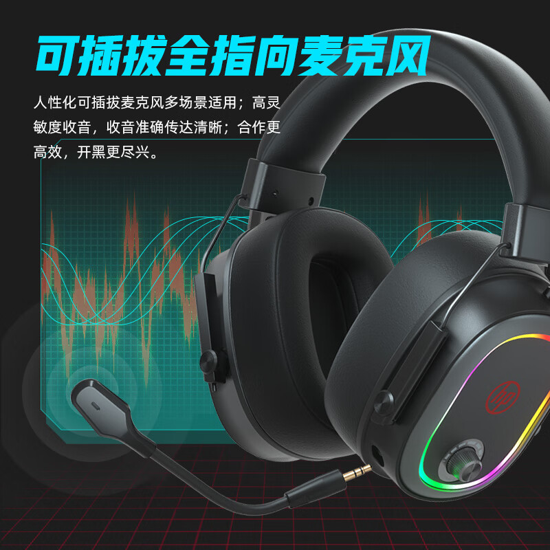 头戴式游戏耳机采用50MM钕铁硼单元,拥有虚拟7.1声效,享受沉浸式360°立体环绕声。麦克风支持拔插。耳机两侧拥有LED彩光灯效。线长约1.5m,重约313g。