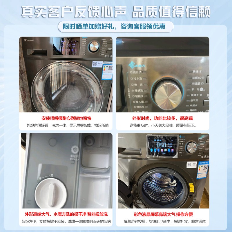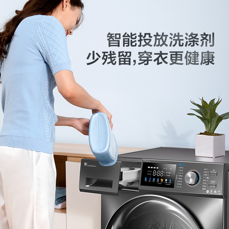 魔方系列 TD100VC187 洗烘一体机 10kg洗涤,7公斤烘干,具备水魔方冷水洗功能,通过三大水流强劲洗涤,呵护衣物保持质感。具有i-smart智能投放,根据自动感应的水量和衣物重量,通过活塞泵控制洗涤剂投放量,减少残留。具有彩色屏幕,钛金属色机身。具备U.abt全时巡航除菌,厂效抑菌。支持活性银离子和UV紫外线灯。一键选择洗涤和烘干程序。内置NTC传感器,避免过度烘干让衣物变形。内部带有模拟搓衣板,魔力提升筋。一级能效标准,支持儿童锁。支持电辅热烘干,支持空气洗。