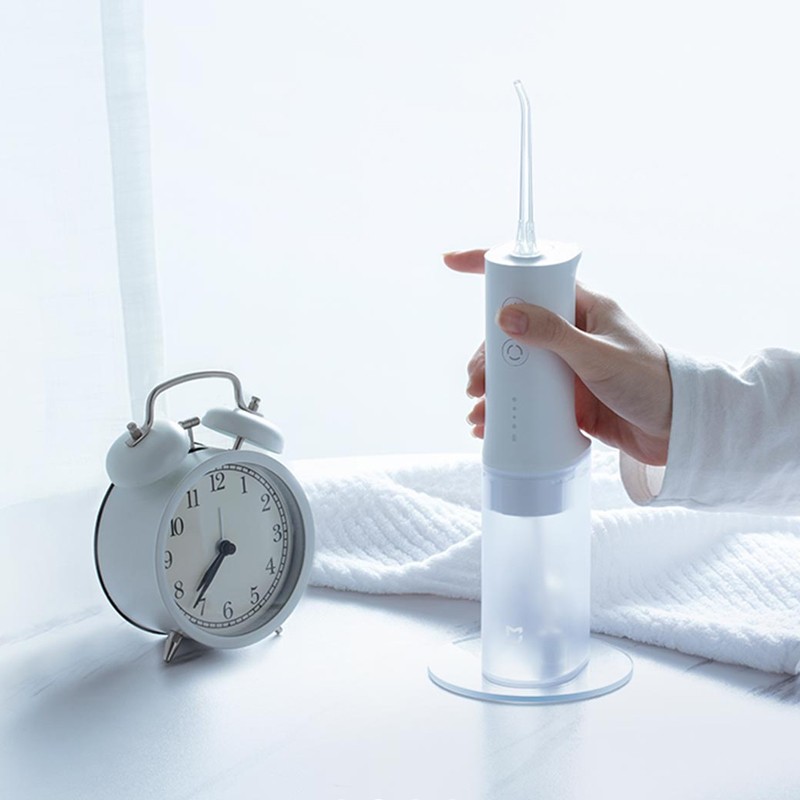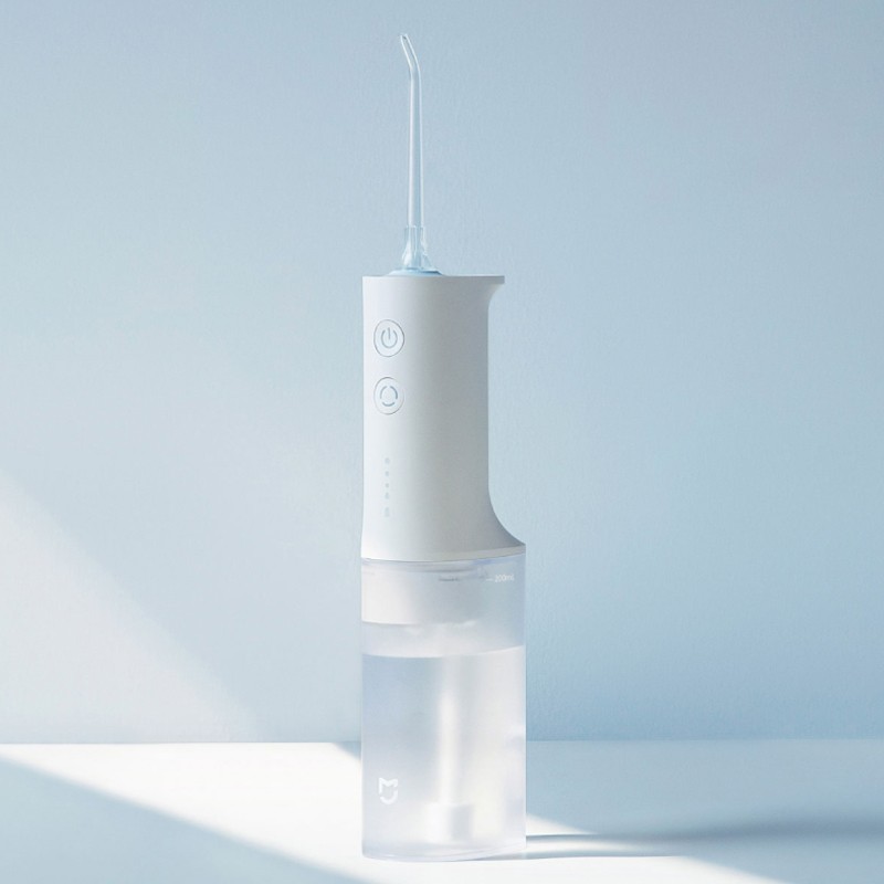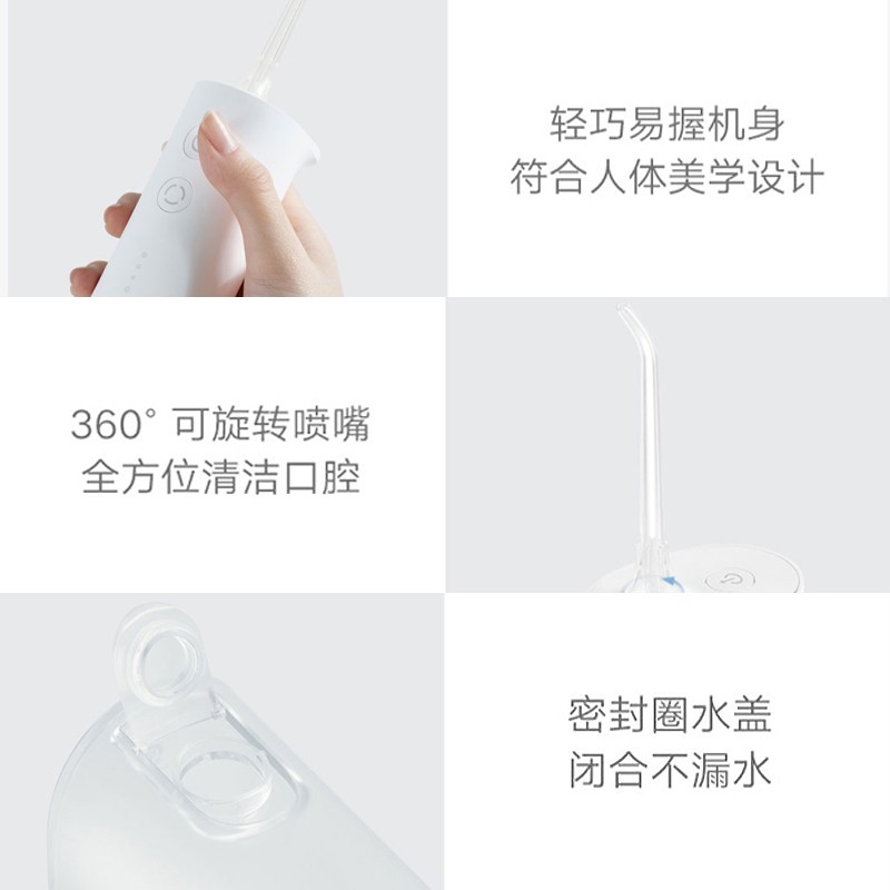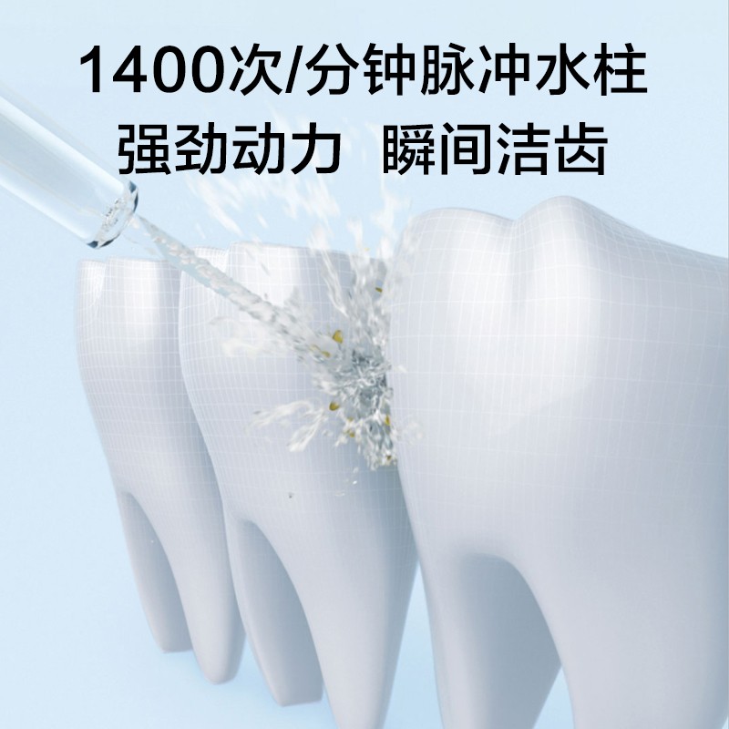 米家电动冲牙器,动力强劲,水压高达140PSI,结合每分钟1400次的高频脉冲,深处口腔盲区,清理牙缝,内置稳压系统,压力不随电量衰减,随时保持稳定输出,200ml水箱容量,无需反复添水,充电4小时,可连续使用45分钟,标配4种专业喷头,满足各种口腔需求,并带有收纳盒,全身IPX7级防水,开机先选择模式,再按下开关才启动,十分人性化,避免乱喷的尴尬。可拆卸水箱设计,方便清洗,使用更卫生。