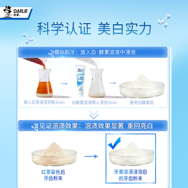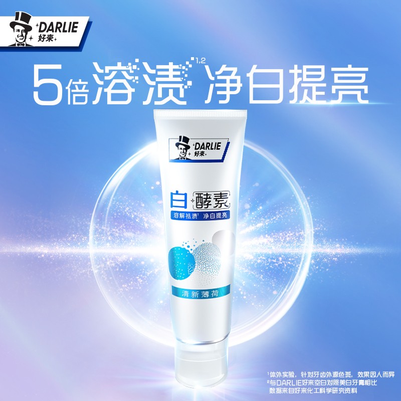黑人(DARLIE)推出的这款牙膏,添加木瓜蛋白酶和葡聚糖酶等成分,帮助清洁牙齿和口腔表面污渍的同时,深层溶解多种色素和祛除顽固牙渍,提亮牙齿,呵护牙釉质,令牙齿洁净清爽。带有薄荷清香,使用后可清新口气。采用翻盖设计,使用方便。