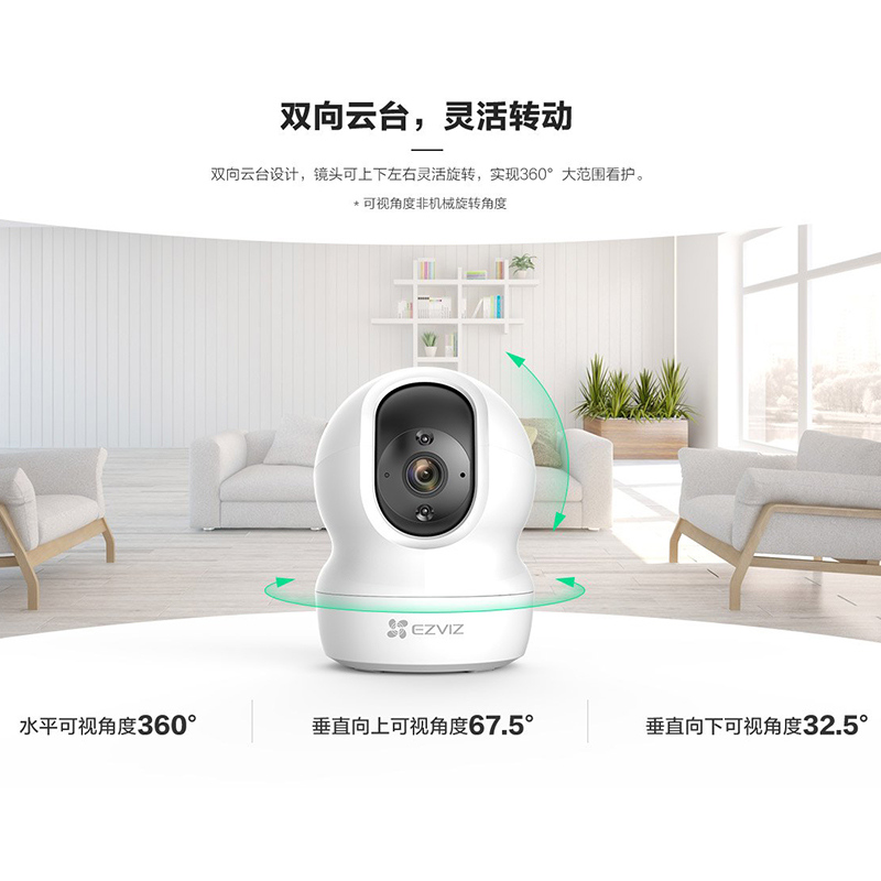 萤石(EZVIZ)这款智能监控摄像头,搭载sony星光级传感器,大光圈景头,相比于上一代摄像机,画面更加清晰细腻。采用双向云台设计,水平旋转角度可达360°,垂直旋转角度可达120°,能全方位监控家里每一个角落。内置高功率LED红外灯,LCR红外滤片自动切换白天黑夜模式,有效距离10米,夜间监控画面也清晰可见。这款智能监控摄像头有1080P和3MP清晰度镜头可选。