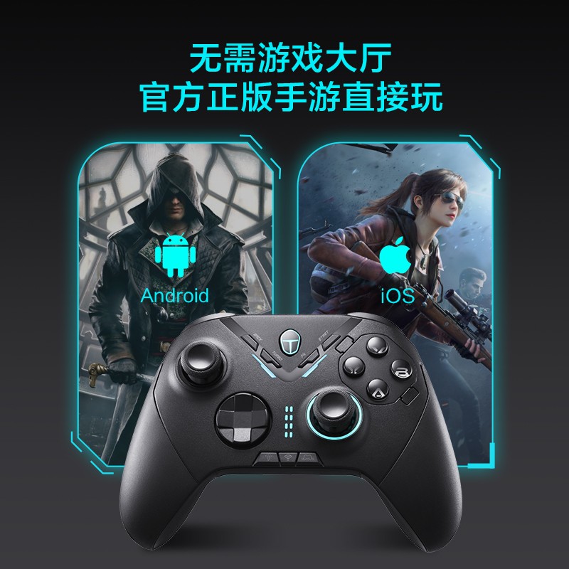 PC/Switch/iOS/Android适配多个平台,蓝牙/接收器/有线三种模式链接,自定义app,强大可视化设计,日本原装APLS摇杆,职业电竞级别摇杆,霍尔线性扳机,3档行程可调,电竞氛围灯,为游戏增添色彩。