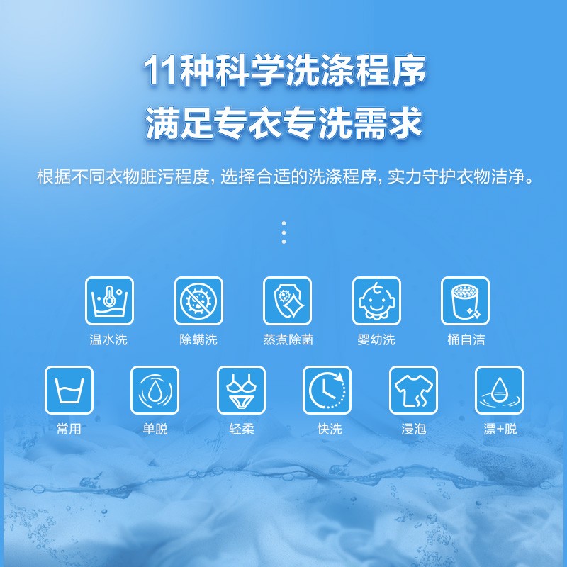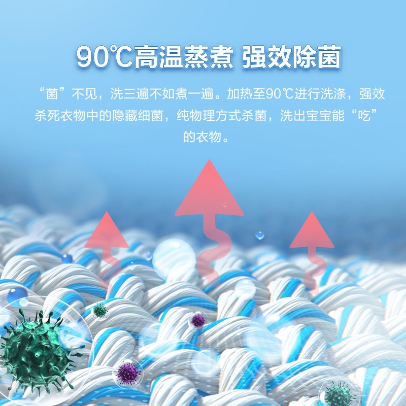1.【除螨】除螨洗,尘螨去除率达97.29%,能有效去除宝宝衣服上的螨虫。2.【蒸煮】蒸煮除菌,高温物理的方式除菌,除菌率达99.99%。3.【方便】长按3秒一键智洗,老人带孩子也能方便使用。4.【耐用】不锈钢内桶,钢化玻璃盖板,用料结实环保5.【便捷】随机自带三通口,大小洗衣机同时可用。 【净尺寸(宽*深*高)】:424x451x740(mm)
