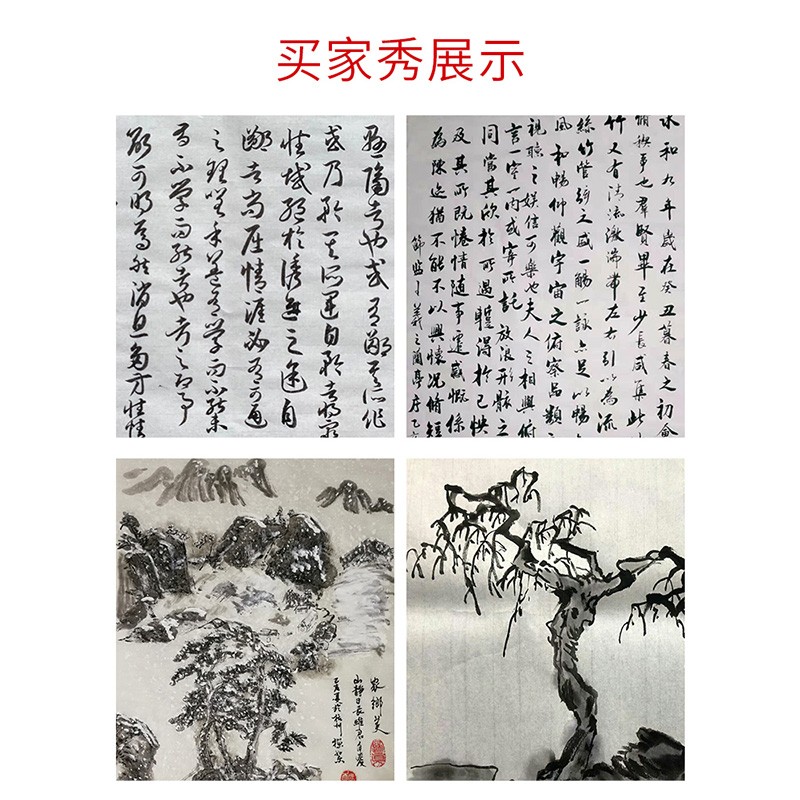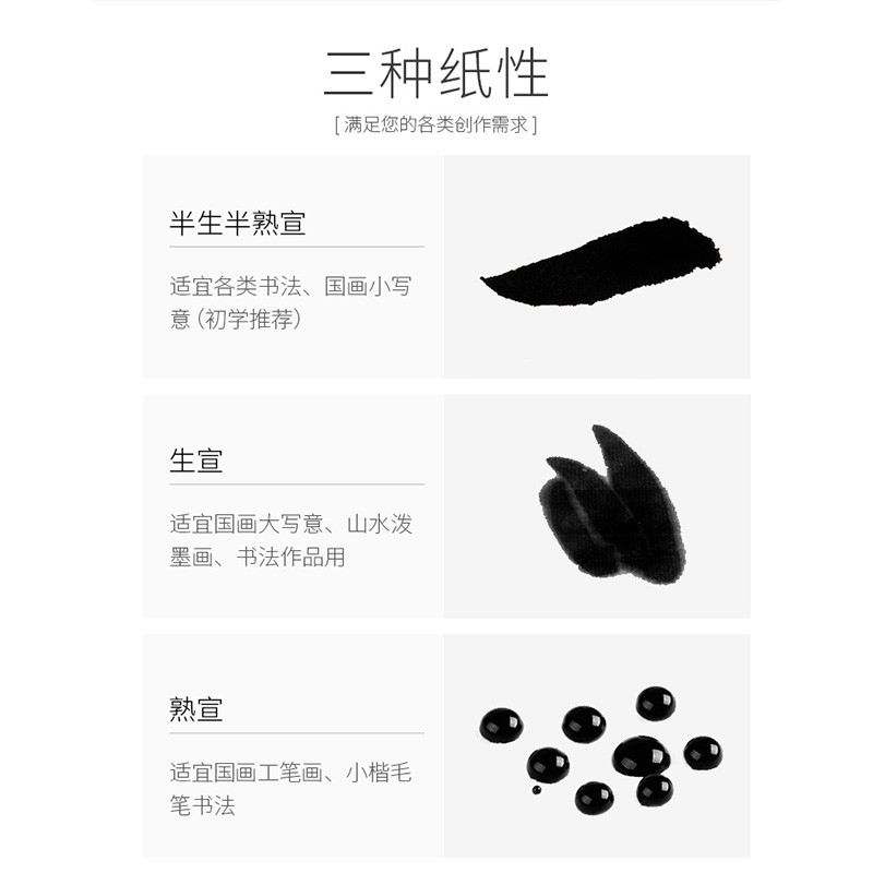 半生熟纸,吸墨适中、散墨较慢,适合小楷、绘画等,初学者练习使用较多。柔韧厚实,纸质细腻,韧性好,耐腐蚀,作品保存时间长,纹路清晰,采用优质原料制作,纹路清晰,书写效果好,量多份足,每刀100张,适合平时练习较勤,用纸量较大的初学者~