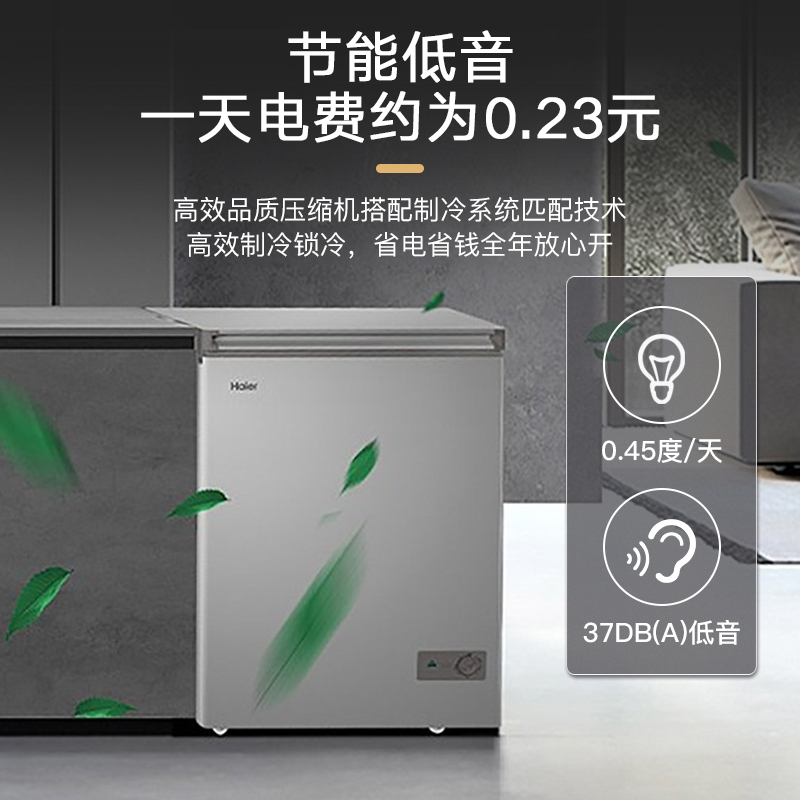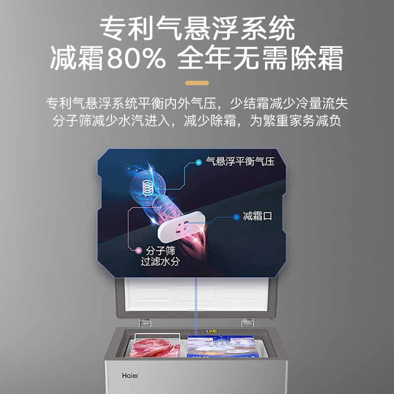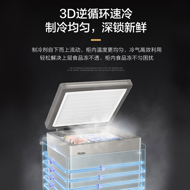 海尔 142GHPCZ 冰柜 减爽80%+抗菌PCM金属内丹+带食品架+3D逆循环 独特钛金灰全彩外观,尽显品质潮流,用心设计每一处布局,化繁为简,提升家居格调